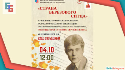 4 октября в большом читальном зале в 12:00 пройдет литературно-музыкальное мероприятие «Страна березового ситца». Приглашаем всех ценителей поэзии Сергея Есенина…