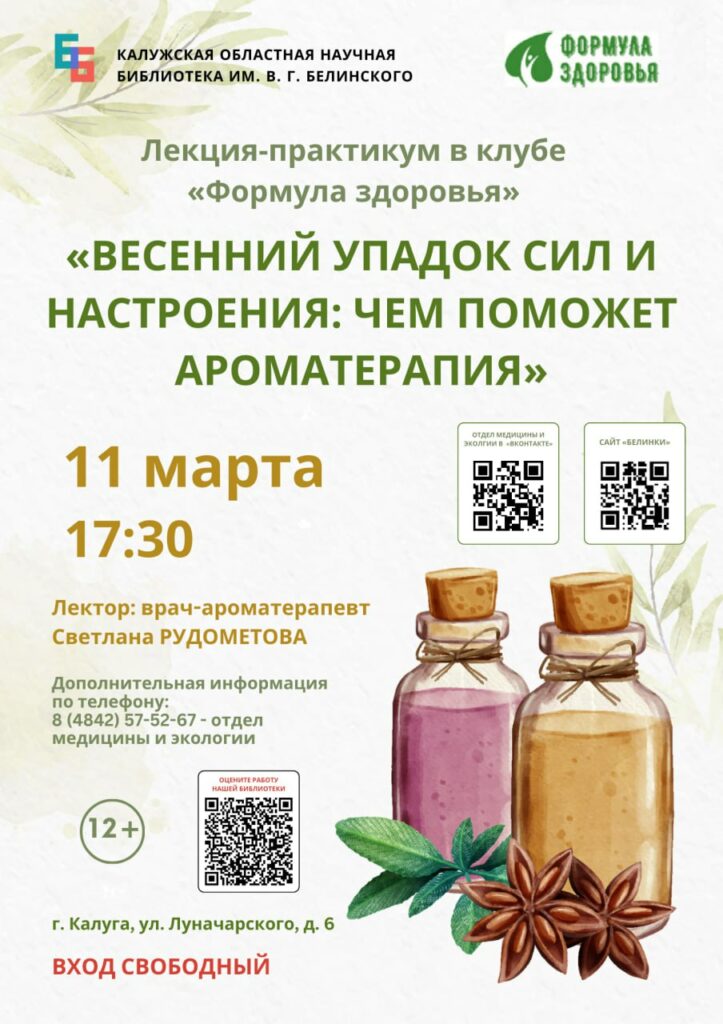 Ароматерапия против весенней хандры! Вот о чем мы поговорим на очередной арома-встрече в клубе «Формула здоровья» 11 марта.