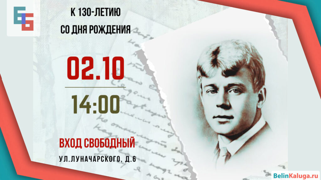 4 октября в большом читальном зале в 12:00 пройдет литературно-музыкальное мероприятие «Страна березового ситца». Приглашаем всех ценителей поэзии Сергея Есенина Вы услышите лирику великого поэта и любимые песни, на его стихи. Также прозвучат произведения о Сергее Есенине. Организаторы — Калужская Далее