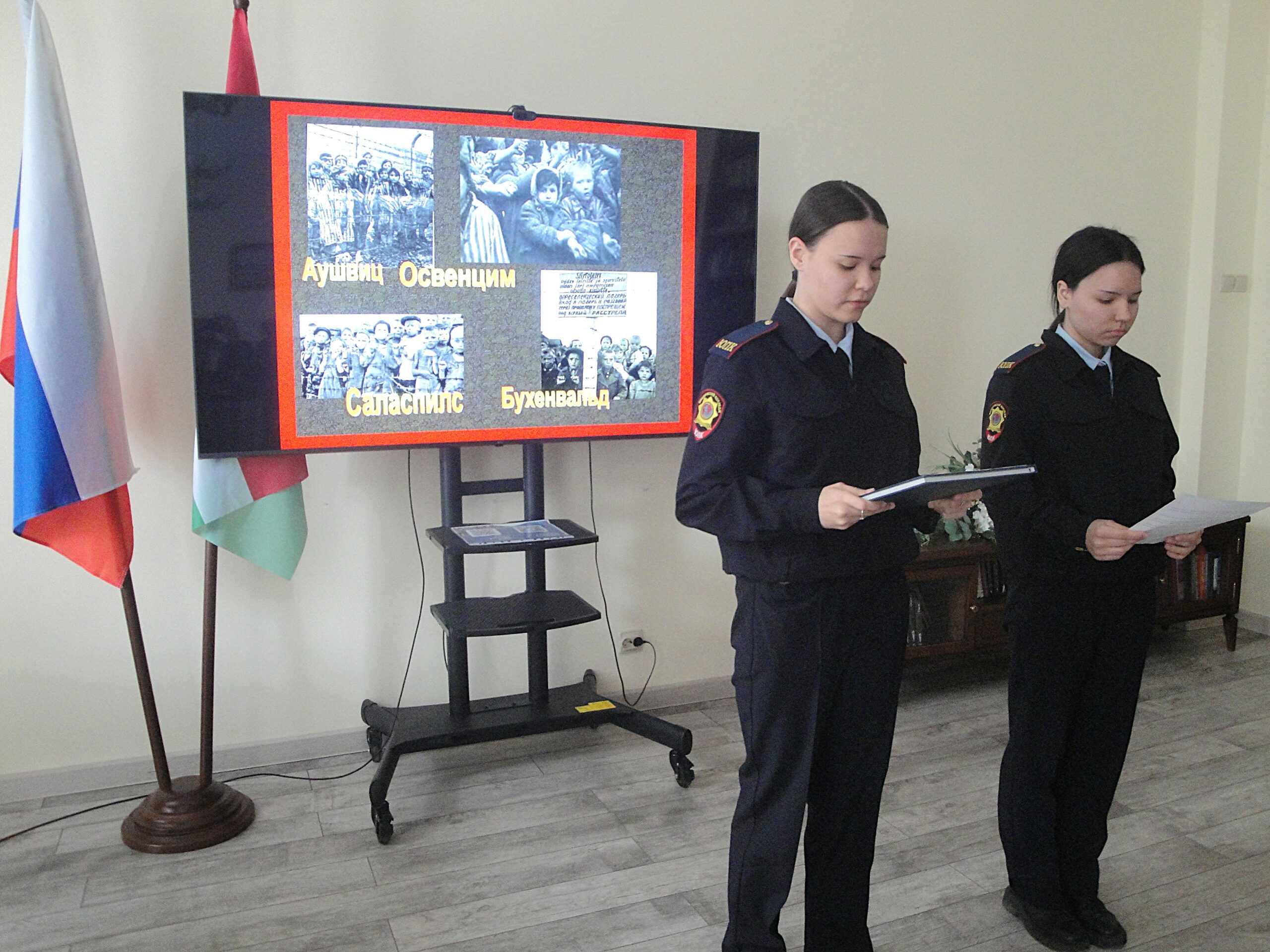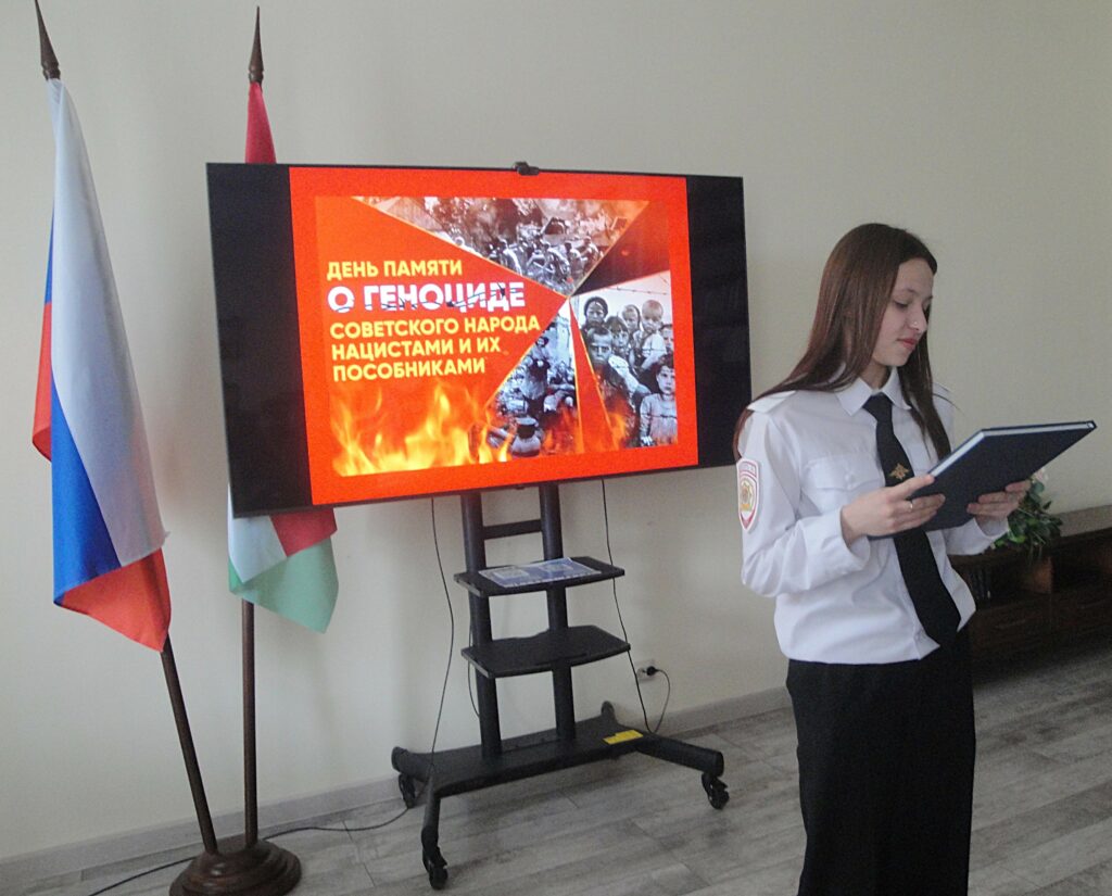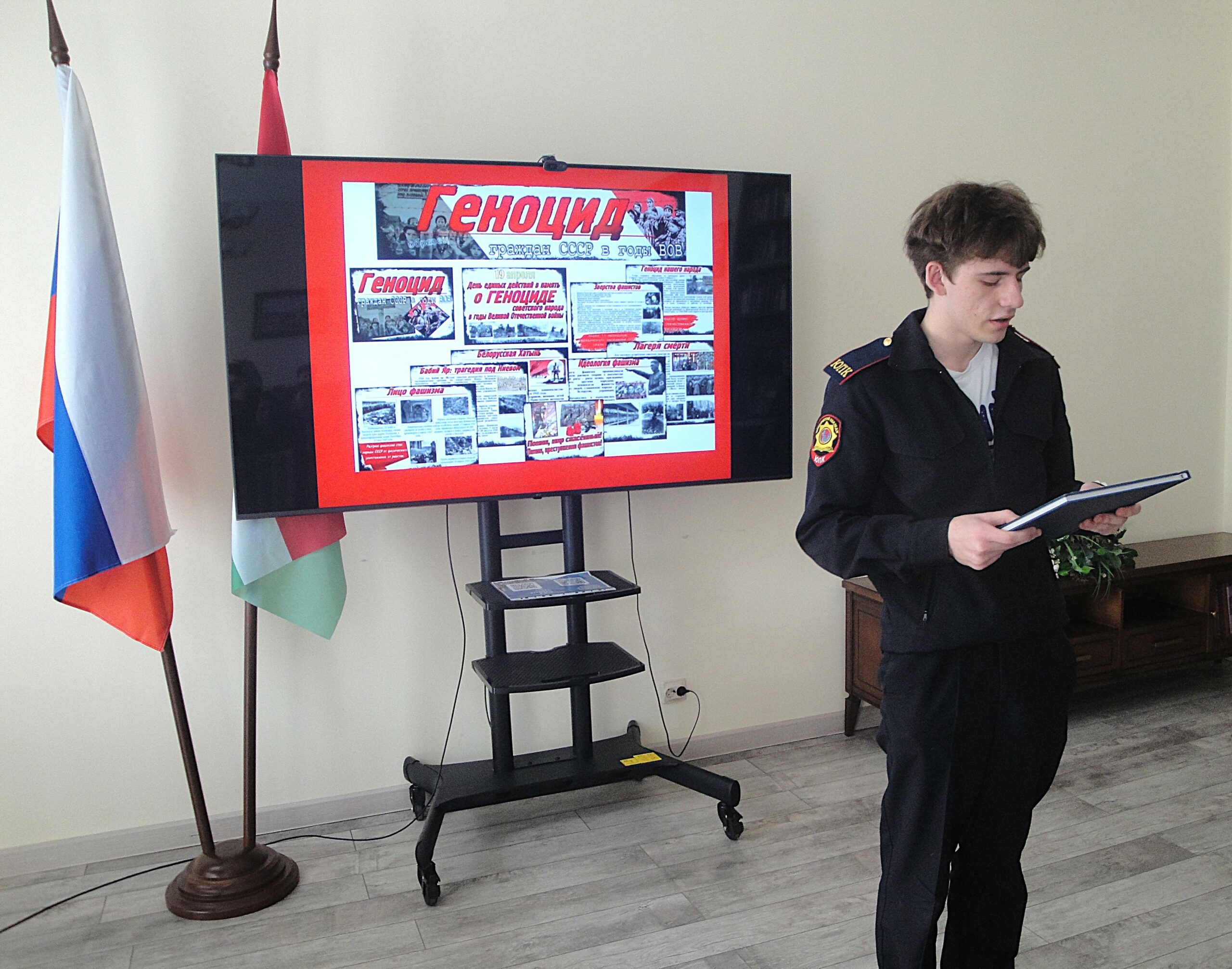 Мероприятие сопровождалось показом тематических видеоматериалов, позволивших глубже ощутить масштаб преступлений фашистов в годы Великой Отечественной войны. Особую эмоциональную силу встрече придали поэтические строки на вышеназванную тему советских и российских авторов, которые прочитали студенты колледжа.