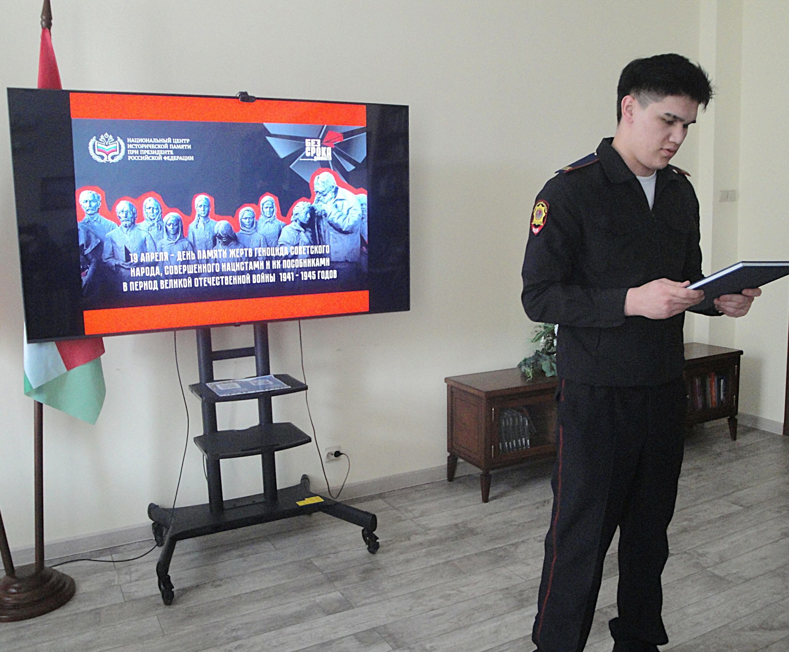 Учитывая чрезвычайную важность сохранения исторической памяти, 20 апреля в библиотеке прошел Час истории «Без срока давности», подготовленный в рамках проведения Дня единых действий в память о геноциде советского народа нацистами и их пособниками в годы Великой Отечественной войны. В мероприятии приняли участие студенты и преподаватели КФ ЧУ ПО «Юридический полицейский колледж».