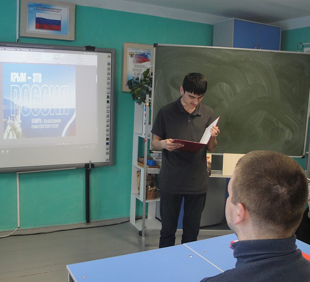 Преподносимый материал дополнили показ документальных видеосюжетов и чтение стихотворений о Крыме в исполнении учащихся.