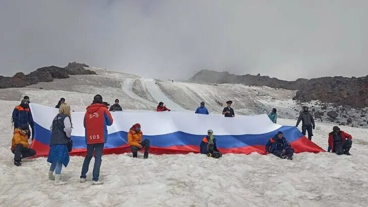 - Самый большой флаг России был поднят на горе Эльбрус в 2016 году размером 40 на 24 метра разложили на белоснежном снегу склона горы Эльбрус на высоте 4800 метров.