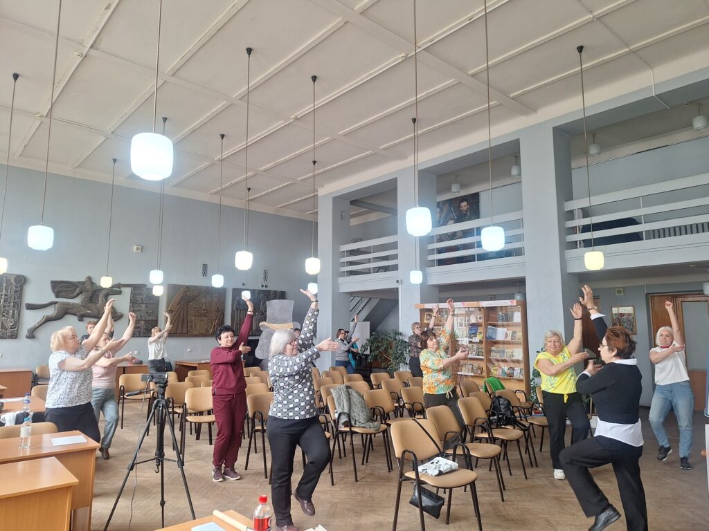 Заряд бодрости и позитива привнесли в этот день практические занятия, которые провели инструктор ЛФК Лариса Климкевич и инструктор по аквааэробике Сергей Мареев. Один только вид инструкторов и физическая форма заставляли доверять их опыту и знаниями, вызывая стремление следовать примеру, что и произошло непосредственно во время встречи с ними.