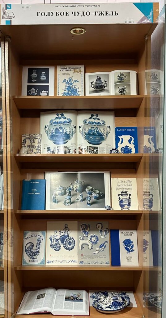 У народных промыслов бывают свои дни? Еще как! 31 января — официальный День Гжели. И мы решили отметить его по-библиотечному: оформили выставку «Голубое чудо -Гжель» из самых интересных книг об этом чуде, книг, которые раскроют вам душу русского фарфора. А для полного погружения — несколько изящных гжельских предметов.