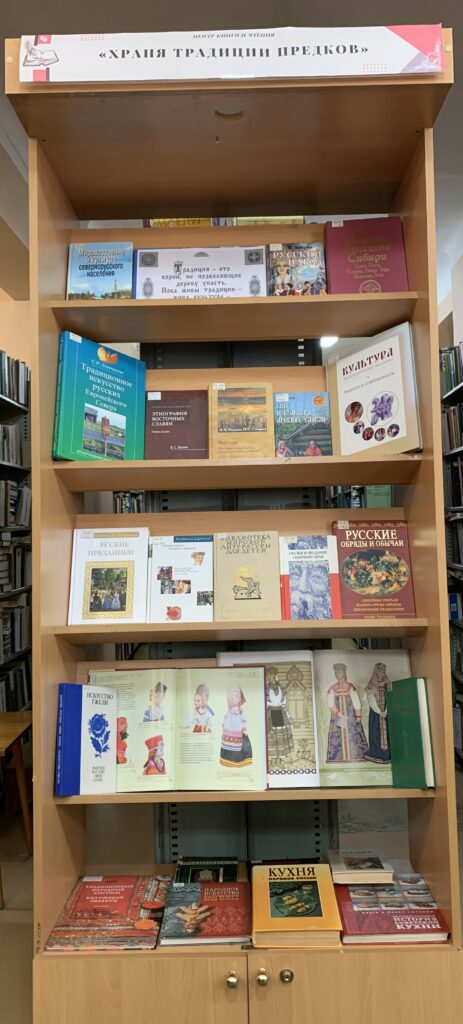 30 апреля в Центре книги и чтения оформлена книжно – иллюстративная этнографическая выставка «Храня традиции предков». На выставке представлены книги, раскрывающие самобытную культуру, традиции и образ жизни народов России.