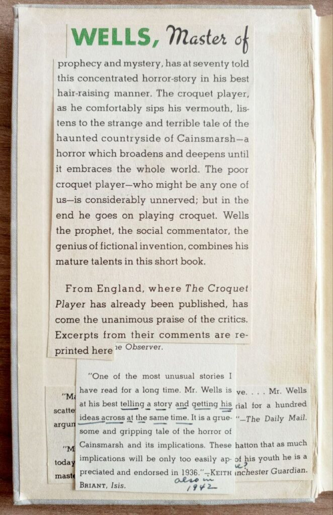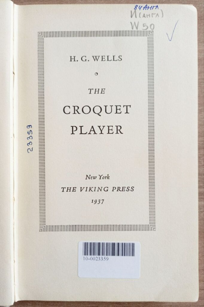 Сегодня отдел иностранной литературы представляет вашему вниманию один из наиболее философски насыщенных и символичных произведений межвоенной эпохи — повести Герберта Джорджа Уэллса (Herbert George Wells, 1866–1946) «The Croquet Player» («Игрок в крокет»). Данное нью-йоркское издание 1937 года, выпущенное издательством The Viking Press, представляет собой не только литературный памятник творчества позднего Уэллса, но и важный исторический документ, отражающий глубинные тревоги и интеллектуальные поиски западной интеллигенции накануне Второй мировой войны.