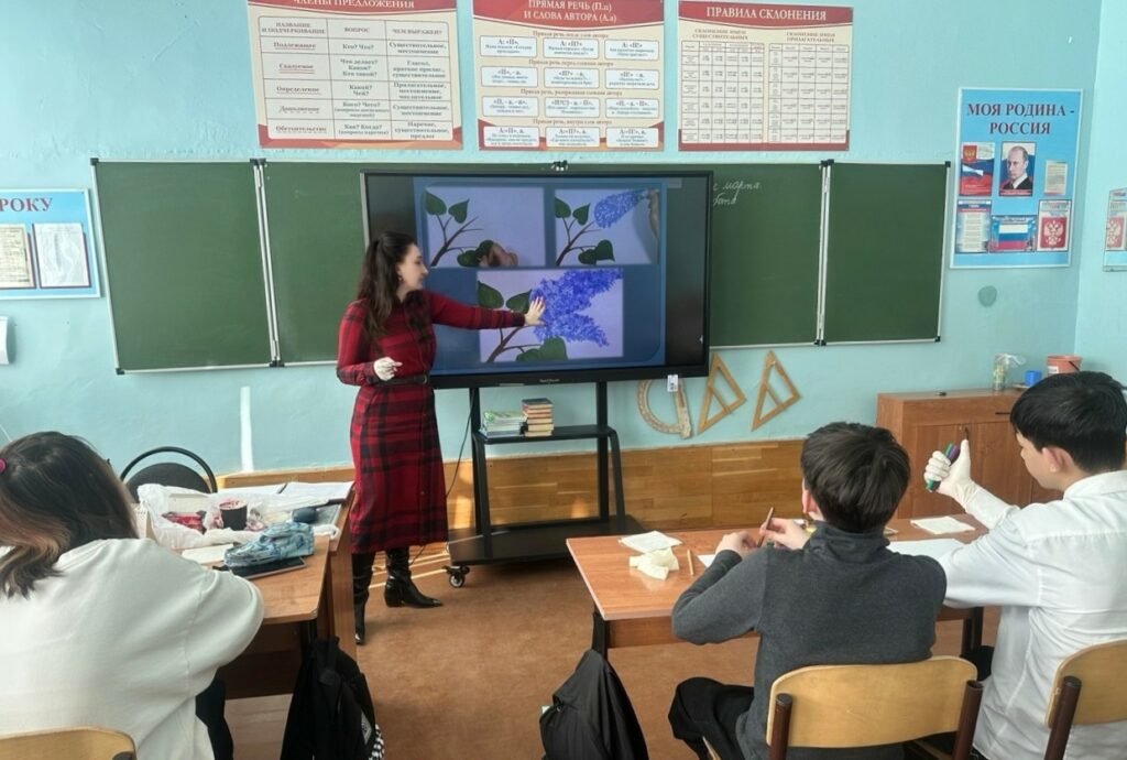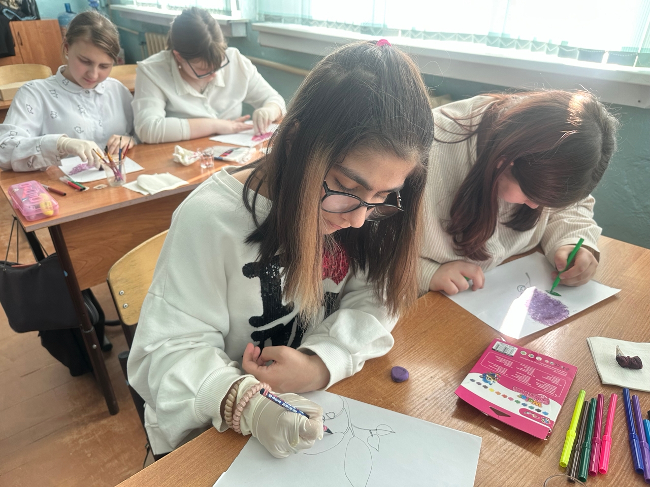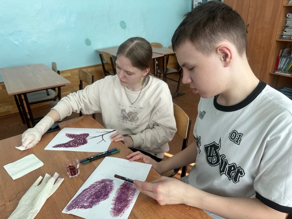 Отдельной частью мероприятия стало проведение мастер-класса по рисованию чаем каркаде — нетрадиционной технике рисования, в которой вместо красок используется этот напиток. В такой технике можно изображать животных, цветы, пейзажи. В процессе рисования получаются разнообразные оттенки фиолетового и сиреневого, что и использовали ребята, создав собственные художественные композиции под общим названием «Сиреневый аккорд».