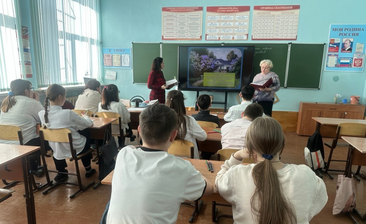 Кроме того, школьники с интересом ознакомились с книжными изданиями из фондов областной научной библиотеки — сборниками стихов русских классиков и альбомами живописи, привезенными в школу специально для данного мероприятия.