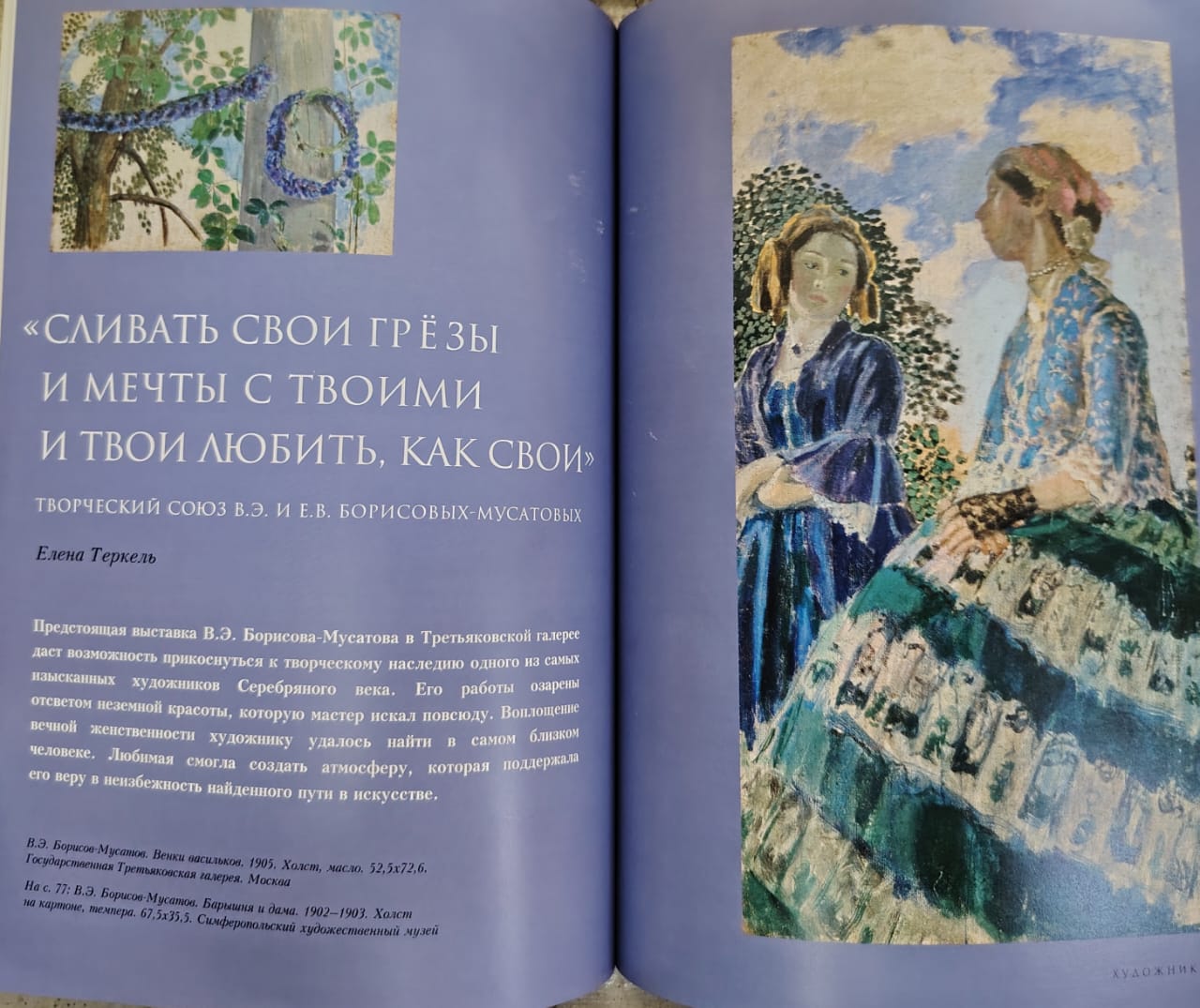 Виктор Борисов-Мусатов — один из талантливейших русских художников-символистов. И хотя он прожил всего лишь 35 лет, оставил после себя удивительные произведения. Его помощницей в творческих поисках, музой стала художница Елена Владимировна Александрова – Сковорода. Она была и моделью художника. Черты её лица запечатлены в героинях полотен «Водоём», «Барышня и дама», «Изумрудное ожерелье», «Реквием». Жизнь художника связана с Тарусой. Последние месяцы своей жизни он также провел в Тарусе, где был и похоронен. Надгробие изготовил в 1910 году близкий друг художника скульптор-модернист Александр Матвеев.