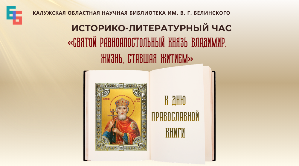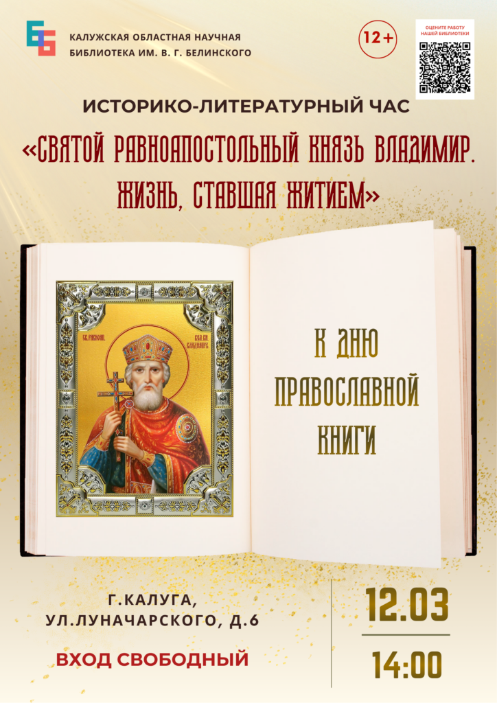 12 марта, в рамках празднования Дня православной книги, в библиотеке пройдет историко-литературный час «Святой равноапостольный князь Владимир. Жизнь, ставшая житием».