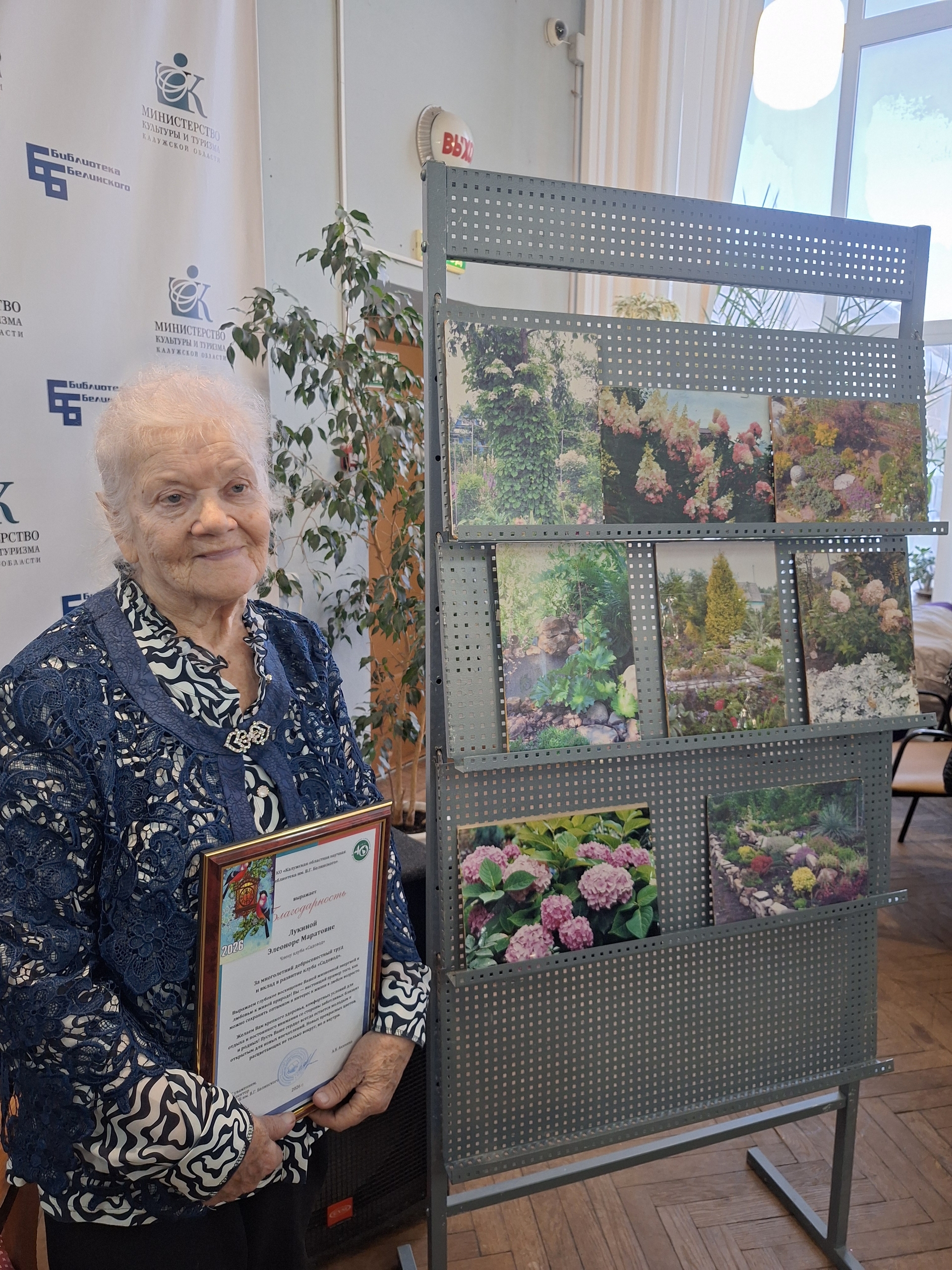 А благодарность от администрации библиотеки, врученная юбилярше во время мероприятия, отмечала не только её вклад в развитие садоводческого клуба, но и верность библиотеке в качестве постоянного и неизменного читателя в течении 70 лет. Именно в 20 лет перешагнула Элеонора Маратовна порог библиотеки на улице Ленина и до сих продолжает оставаться ее постоянным читателем, лишь сменив жанр любимых книг с художественных на мемуарные.