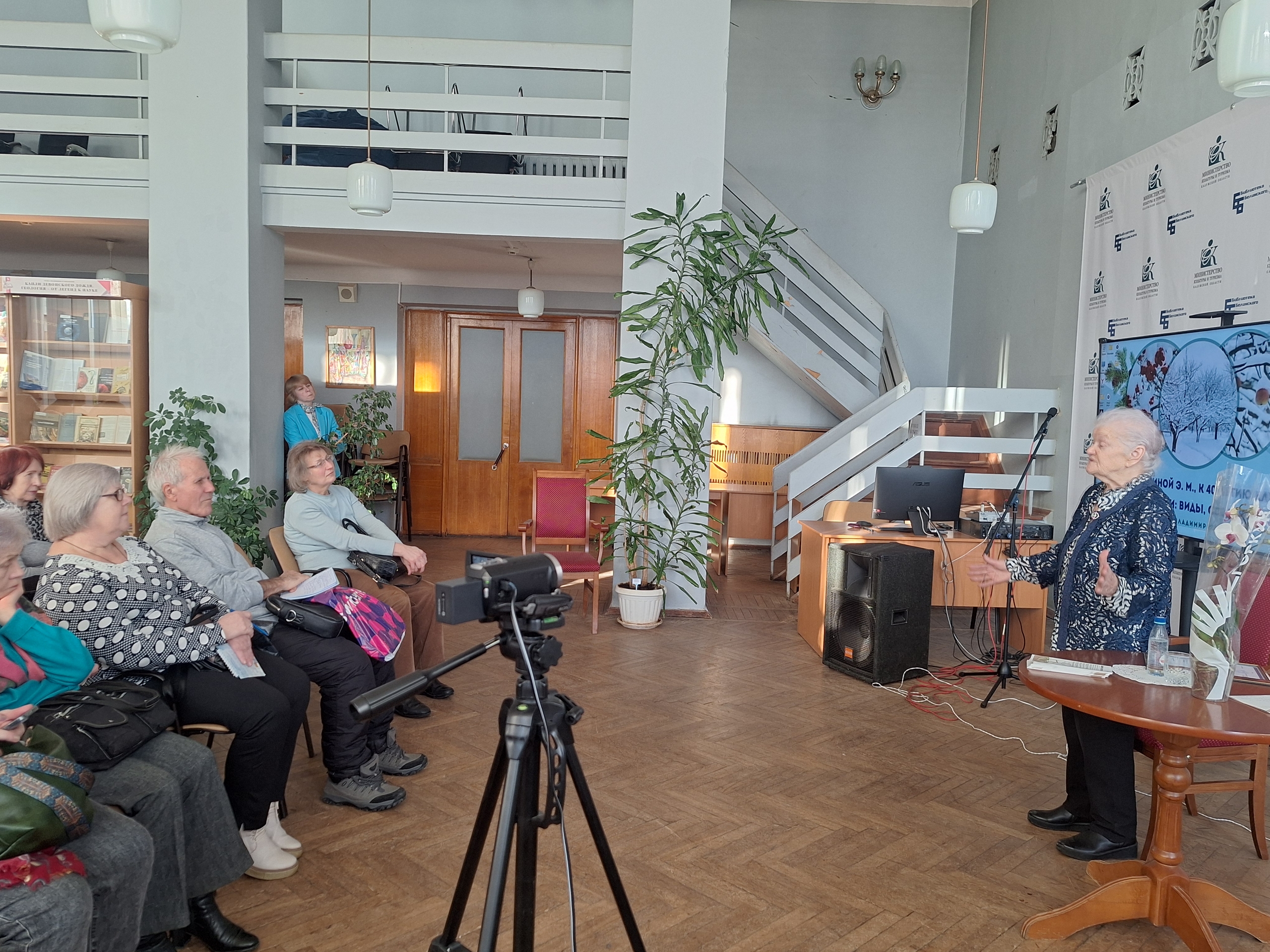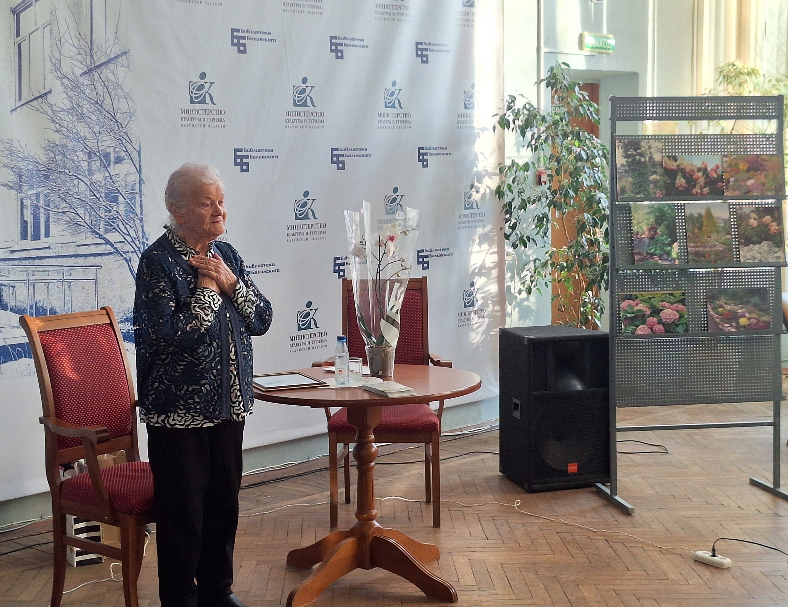 Сотрудники библиотеки подготовили видеопрезентацию, составленную из личных фотографий и цитат из публикаций Элеоноры Маратовны, которая была постоянным «цветочным» корреспондентом калужских газет.