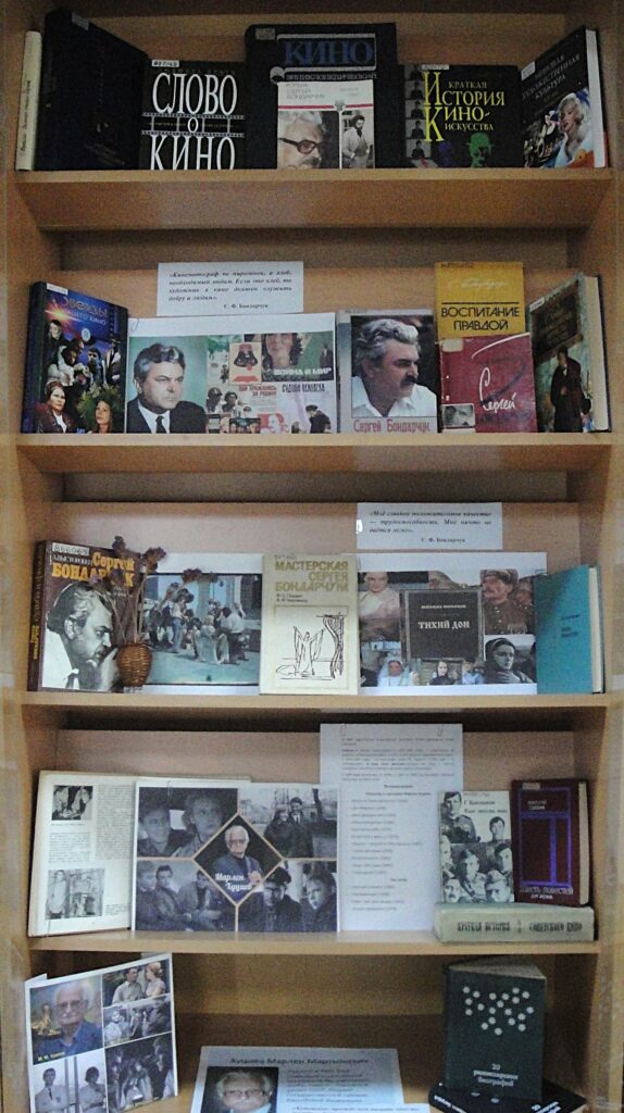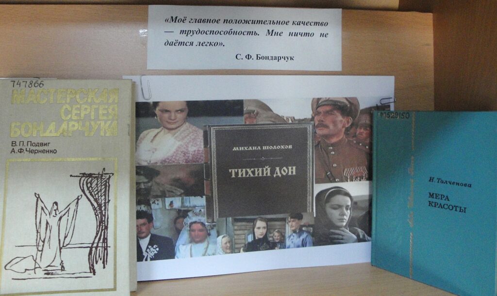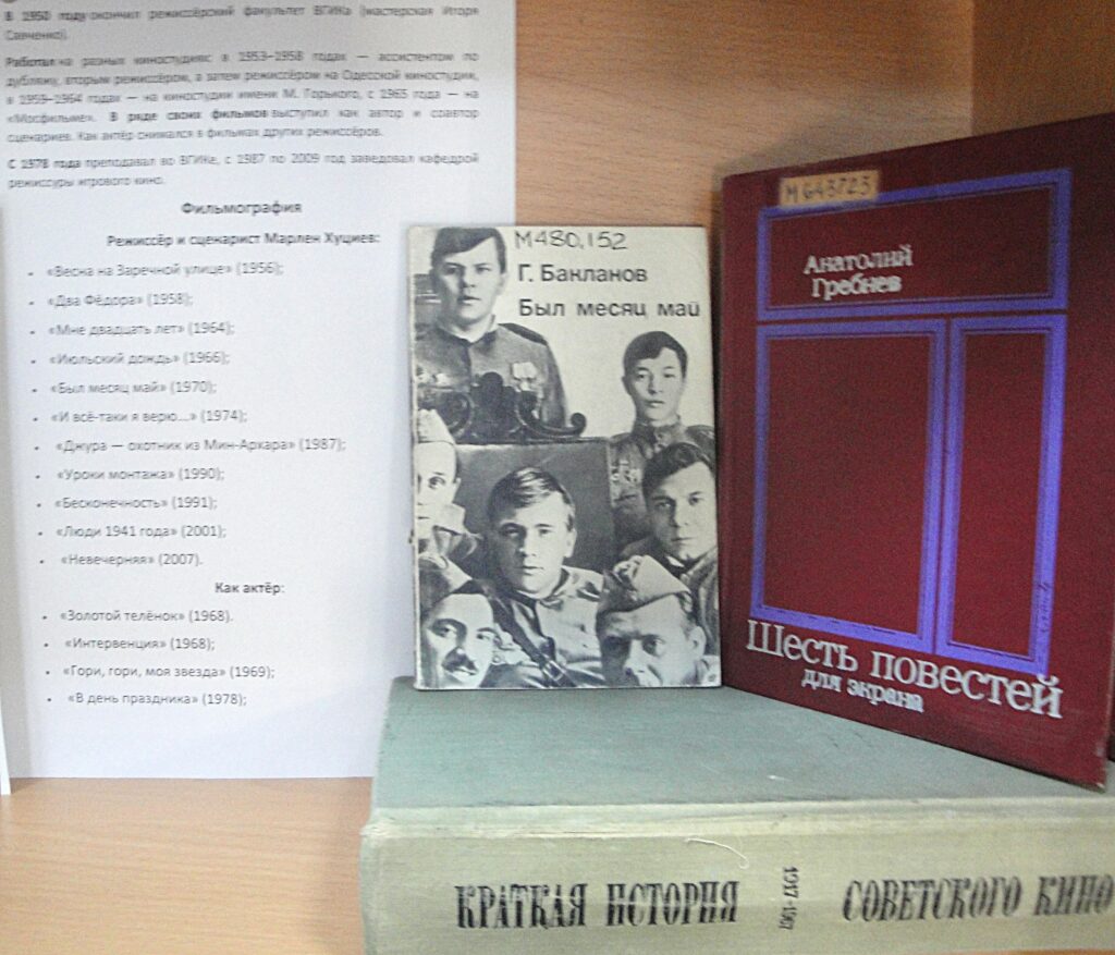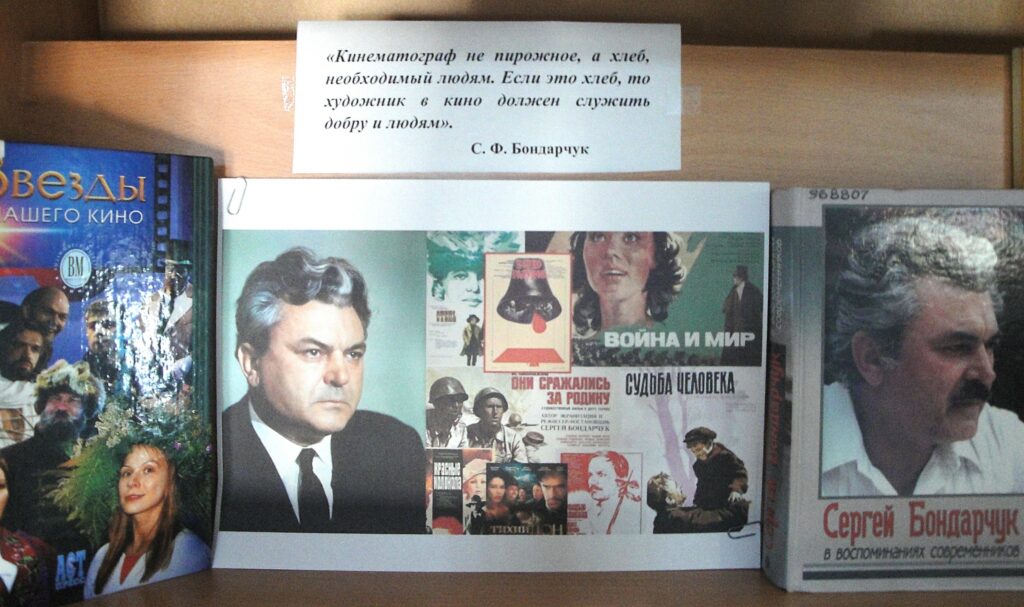 Дорогие друзья! В Калужской областной научной библиотеке им. В.Г. Белинского работает книжно-иллюстративная выставка «Великие русские кинорежиссеры», подготовленная к 105-летию со дня рождения С.Ф. Бондарчука и 100-летию со дня рождения М.М. Хуциева. В экспозиции представлен материал, рассказывающий не только о жизни и творческой судьбе этих гениальных творцов, но и знакомит с историей отечественного киноискусства в целом.