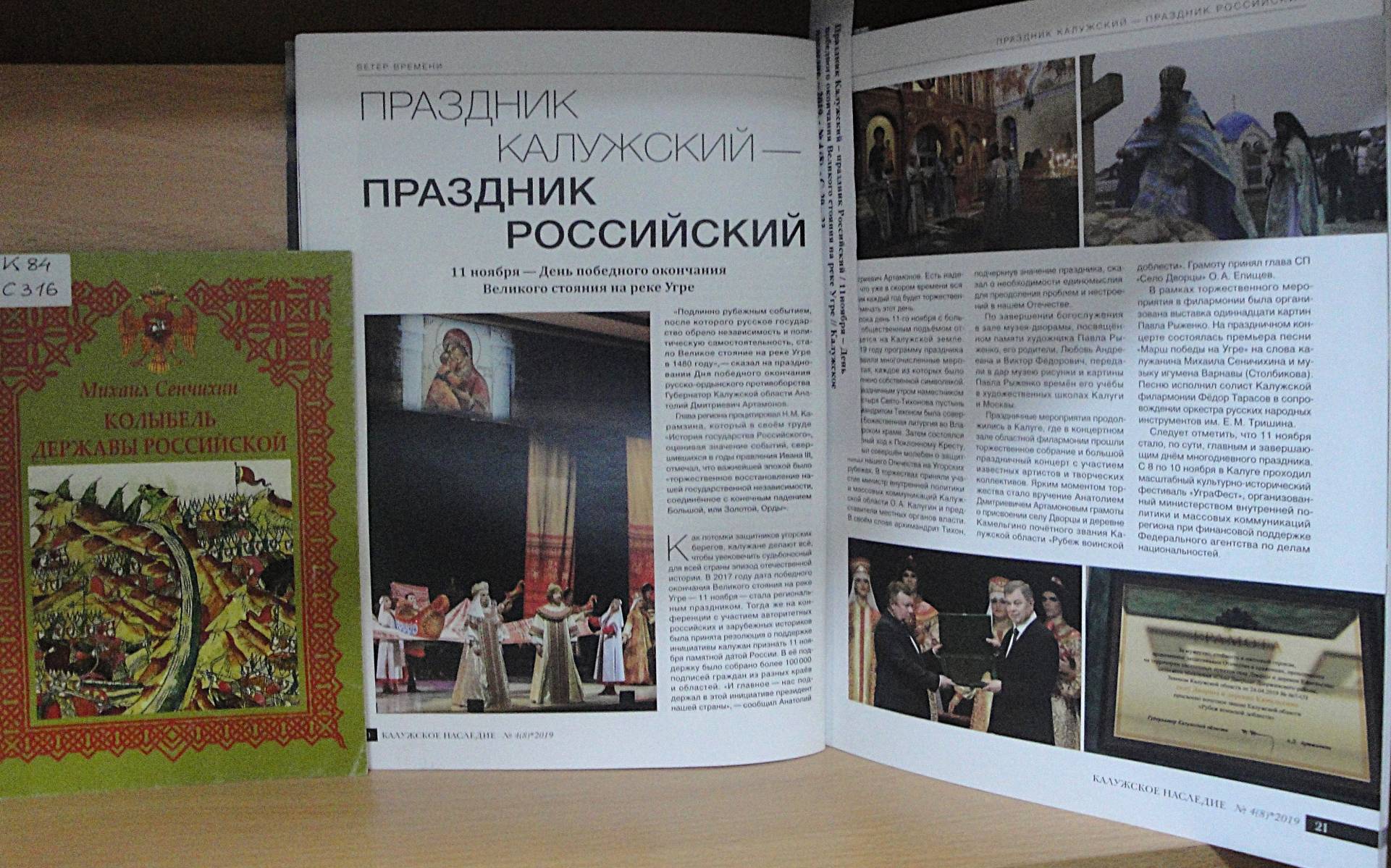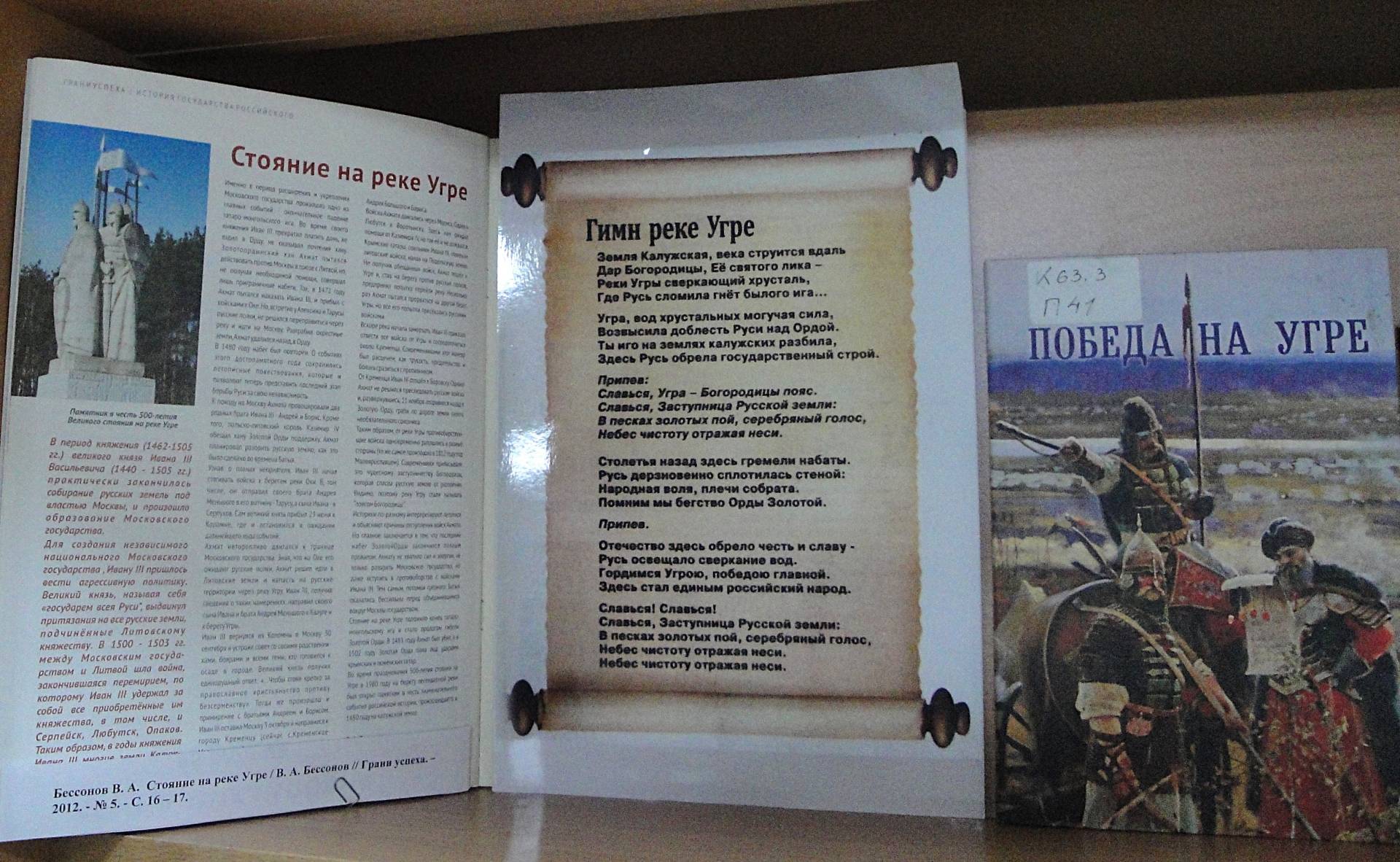Дорогие друзья! В Калужской областной научной библиотеке им. В.Г. Белинского открыта книжная выставка «Великое Стояние на реке Угре», подготовленная к Дню победного окончания Великого Стояния на р. Угре. В экспозиции представлен материал, отражающий разные аспекты важного события 1480 года, а также его значение в великой истории России.
