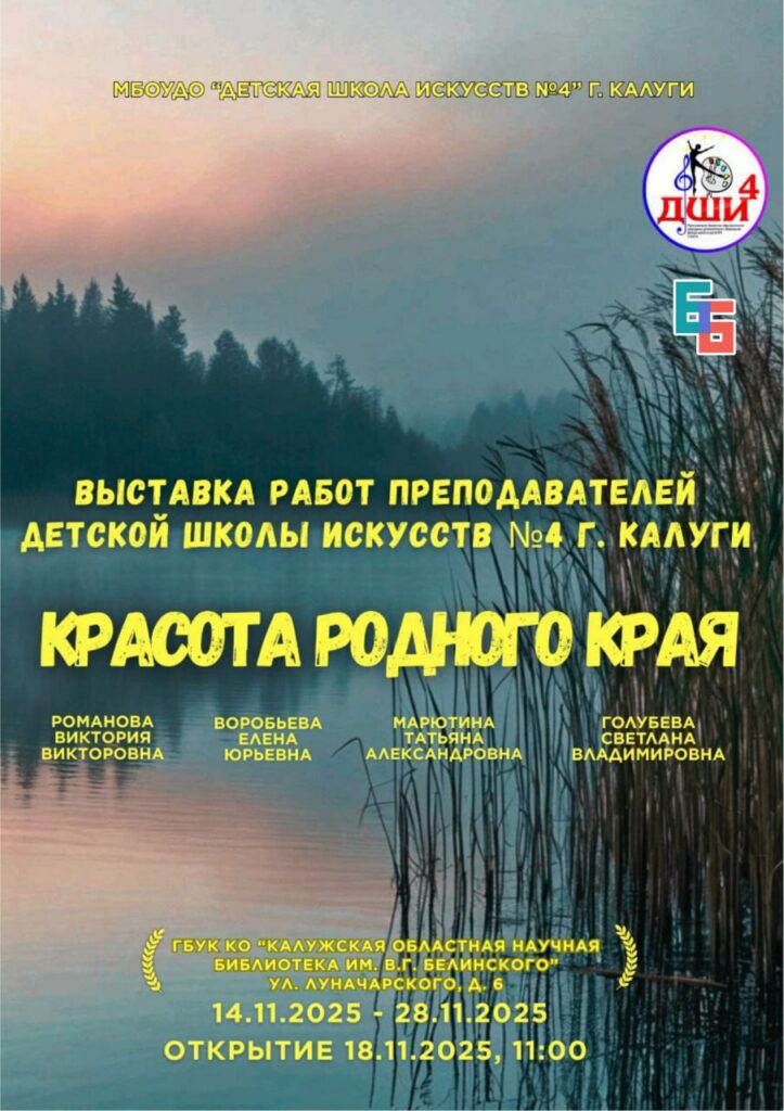 Дорогие друзья! 18 ноября в 11.00 приглашаем вас на открытие выставки преподавателей художественного отделения Детской школы искусств №4 —
