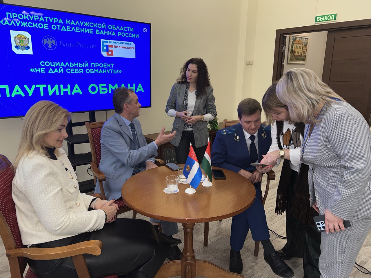 В стенах нашей библиотеки 25 ноября состоялся круглый стол, посвященный актуальной теме «Паутина обмана». В мероприятии приняли участие высококвалифицированные эксперты: Дмитрий Меньков, заместитель начальника управления прокуратуры Калужской области,амбассадор просветительского общества «Знание», Наталья Козьмина, клинический психолог и финалист престижного конкурса «Знание.Лектор», а также заместитель начальника отдела кибер безопасности Калужского отделения Банка России Владимир Разоренов.