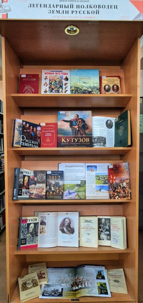 К 280-летию со дня рождения Михаила Илларионовича Кутузова-Голенищева Центр книги и чтения представляет книжно-иллюстративную выставку «Легендарный полководец русской армии». Михаил Илларионович Голенищев-Кутузов (1745-1813) знаменитый русский полководец, государственный деятель и дипломат. Участник множества войн и сражений, победитель Наполеона в Отечественной войне 1812 года, награжден всеми орденами Святого Георгия, был любимым учеником Александра Суворова. Последний из плеяды «славных екатерининских орлов», герой Очакова, Измаила, Мачина, он выжил после серьёзнейших ранений, чтобы в конце земного пути совершить главный свой подвиг: возглавив русскую армию, разгромить и изгнать иноплеменное воинство, вторгшееся в Россию под предводительством Наполеона в 1812 году. На выставке в Центре книги и чтения представлены богатые документальные и художественные материалы, освещающие жизненный путь великого полководца.