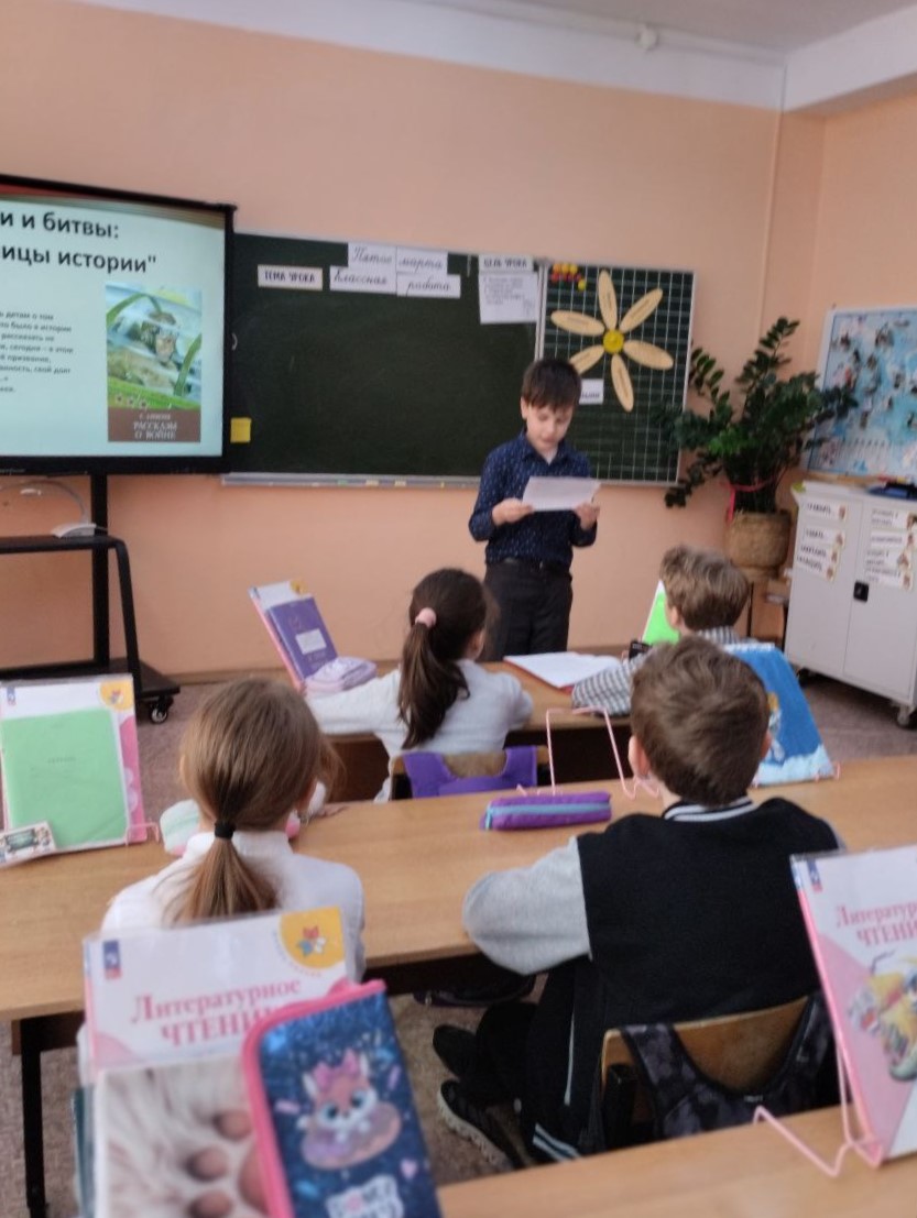 Тема войны была и остается одной из ведущих в рассказах Сергея Алексеева. «100 рассказов о войне» — так называется сборник коротких произведений на военную тематику. Учащиеся школы № 18 читали вслух рассказы: о лётчике Горовце, сбившем в одном бою девять фашистских самолётов и геройски погибшем в неравной схватке; о беспримерном подвиге Алексея Маресьева, доказавшего всем, что можно воевать и сбивать врага даже на протезах. Особенно ребятам полюбился рассказ о медвежонке, которого подарили солдатам. Он рос, мужал, превратился в огромного медведя, вместе со своей ротой прошёл по дорогам войны, наводя ужас на немцев и обращая их в бегство. Не раз выручал он солдат. Затаив дыхание, слушали ребята и сопереживали героям. А потом все вместе обсуждали прочитанное и отвечали на вопросы.