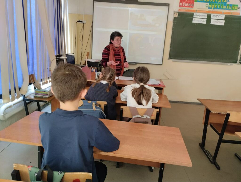 «Книжкины именины» — так называют праздник детской и юношеской книги, который ежегодно проводится с 26 марта 1943 года. Инициатором и создателем его был детский писатель Лев Кассиль. Он подарил детям мир книг, в котором дружба, верность, добро и любовь к Родине – главные ценности! Кассиль написал много рассказов о войне, главными героями которых являются дети, сверстники современных мальчишек и девчонок. В рассказе «У классной доски»- история одного школьного урока, прерванного вторжением немецких солдат, взявших в заложники детей и их любимую учительницу, чтобы выведать данные о партизанском отряде. Но дети не испугались угроз врага. Проявив отвагу и смекалку, они сумели спасти и учительницу, и спаслись сами, вызвав на подмогу партизан. Учащиеся школы №18 прослушали рассказ с напряжённым вниманием. Во время обсуждения ребята ответили на вопросы.
