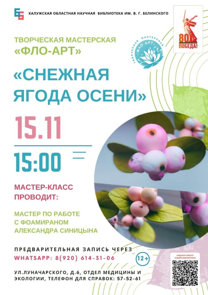 🌿15 ноября в 15.00 в творческой студии библиотеки «Фло-Арт» состоится мастер-класс по работе с фоамираном «Снежная ягода осени».