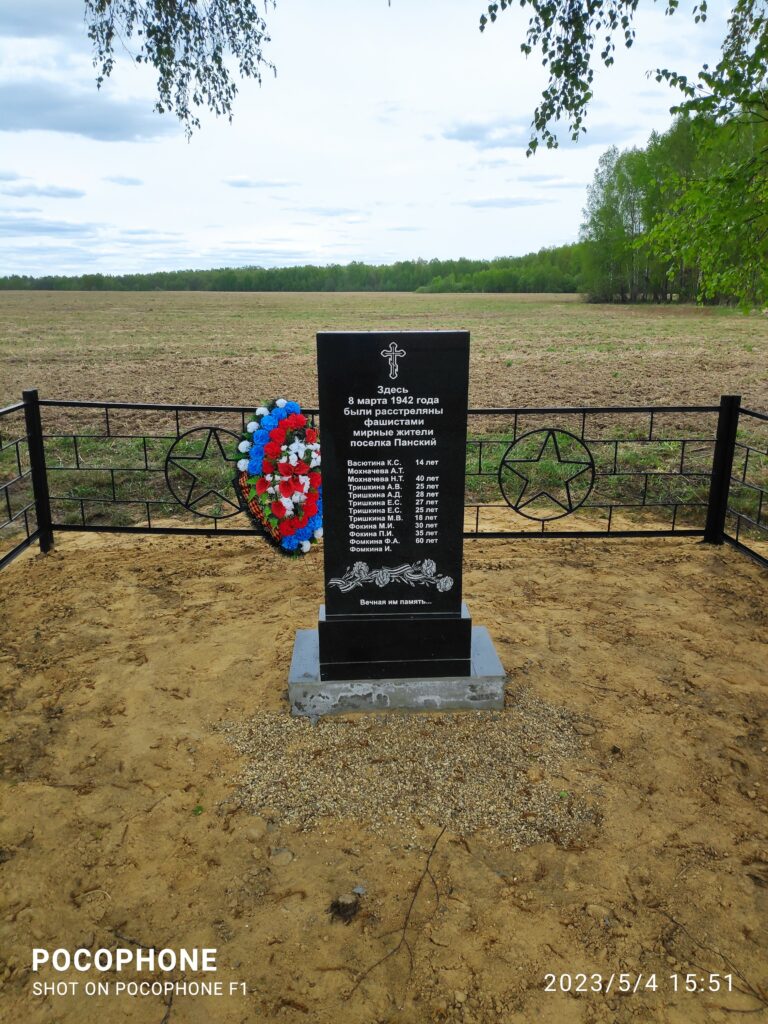 8 марта 1942 года немецкие каратели зверски уничтожили 12 женщин и девочек. Они похоронены в братской могиле у п. Панский.