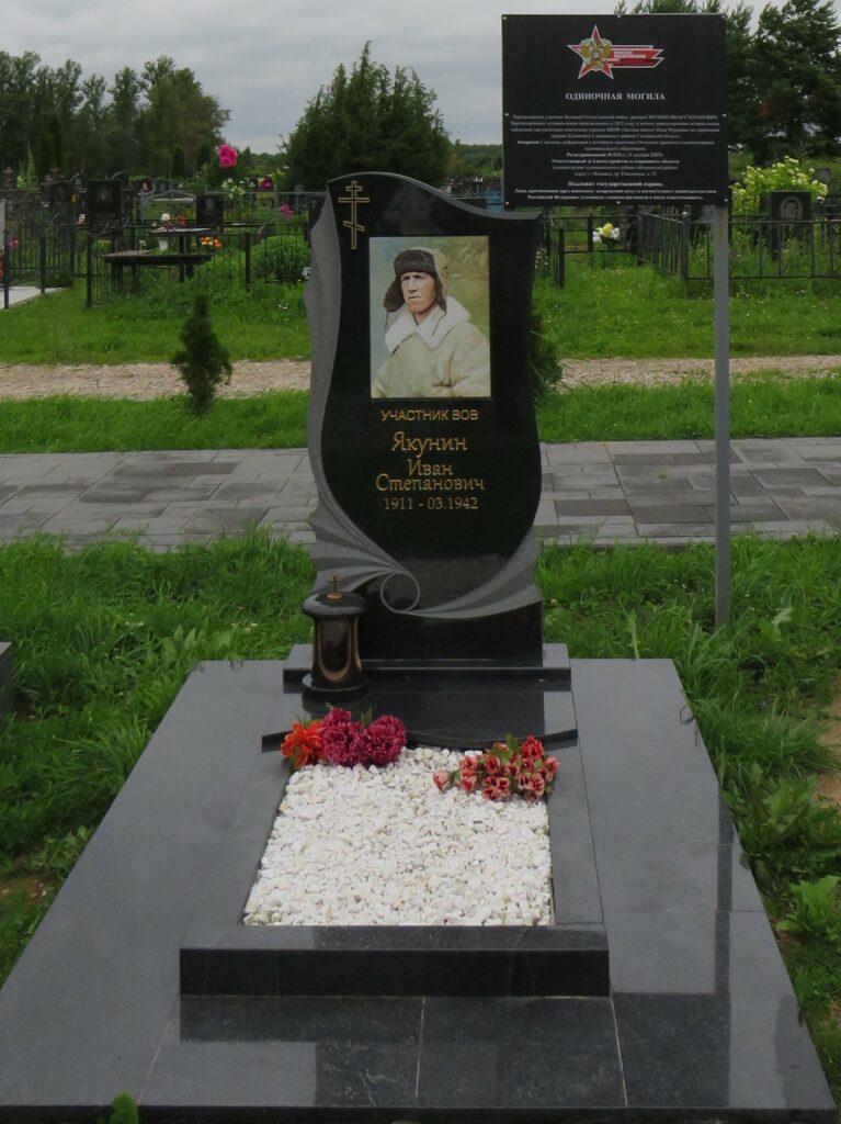 Одиночное захоронение участника Великой Отечественной войны Ивана Степановича Якунина расположено на Аллее Славы на новом кладбище города Мещовска Калужской области. Рядом с могилой установлен Мемориальный знак с № 634.