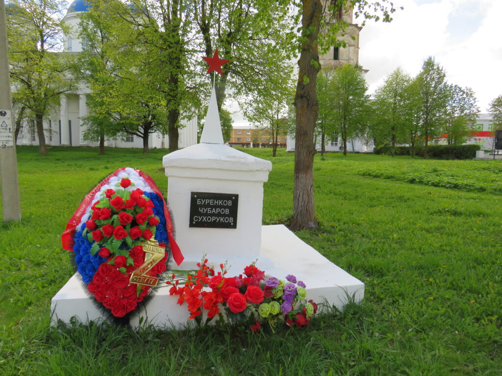 Согласно сведениям Государственного архива, в боях с немецко-фашистскими захватчиками здесь погибли партизаны: члены ВКП(б) Сухоруков и Чубаров и кандидат в члены ВКП(б) Буренков.
