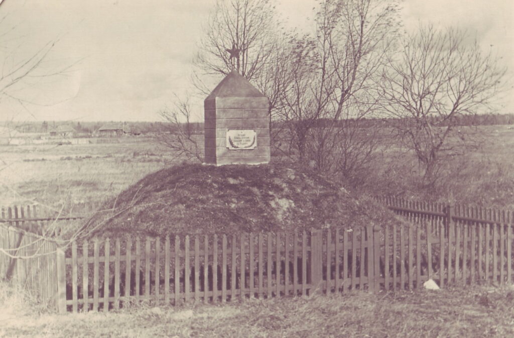 В 1955 году на могиле был сооружён холм пирамидальной формы, обложенный дёрном. На вершине холма установлен бетонный памятник-обелиск, на лицевой стороне которого высечены слова: «Вечная слава героям, павшим в боях за Родину». Памятник-обелиск был установлен по типовому проекту № 29. Вскоре у подножия холма была установлена скульптура женщины, возлагающей венок. Могила обнесена металлической оградой.