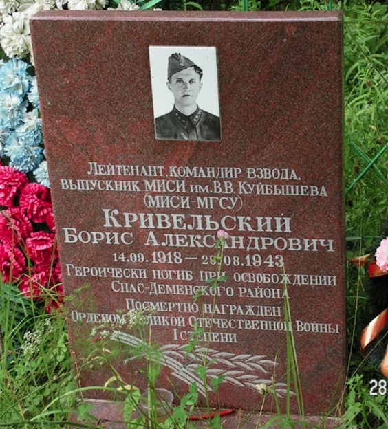 В ходе кровопролитных боёв один за другим были освобождены от немецко-фашистских захватчиков населённые пункты Спас-Деменского района. 28 августа 1941 года 21 армия прорвала оборону противника в районе д. Семёновка. Здесь же вела бои 222-я стрелковая дивизия 33 армии. На одном участке обороны находился взвод лейтенанта Бориса Кривельского. В ходе боя взвод под командованием лейтенанта Кривельского уничтожил немецкие танки. Первым в атаку устремился Борис Кривельский. Воодушевлённые примером лейтенанта бойцы с криком «Ура» пошли в атаку. Но у горящего танка остался лежать молодой командир. Было ему 25 лет. Случилось это 29 августа 1943 года. Прошли годы. Как дань памяти подвигу, стоит на месте гибели Бориса Кривельского памятник. В память о нём преподаватели и студенты строительного отряда МИСИ, где учился Борис Кривельский, спроектировали и построили новое здание школы в д. Нестеры, на здании была установлена мемориальная доска, имя Бориса Кривельского носил пионерский отряд. На протяжении ряда лет студенческий автопробег этого учебного заведения, приуроченный к дню Победы, традиционно проходил через Спас-Деменск и деревню Нестеры.