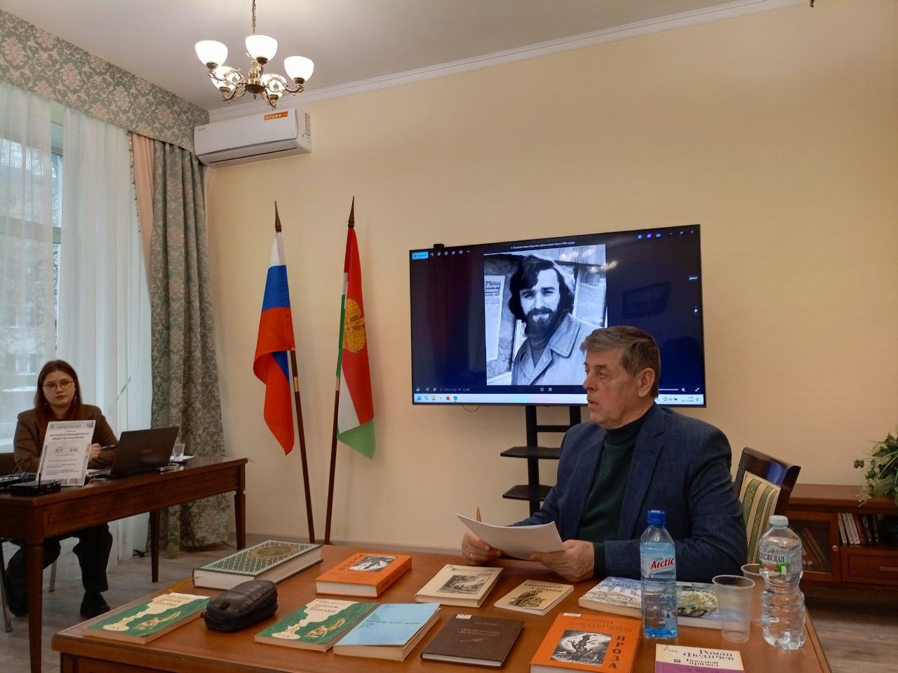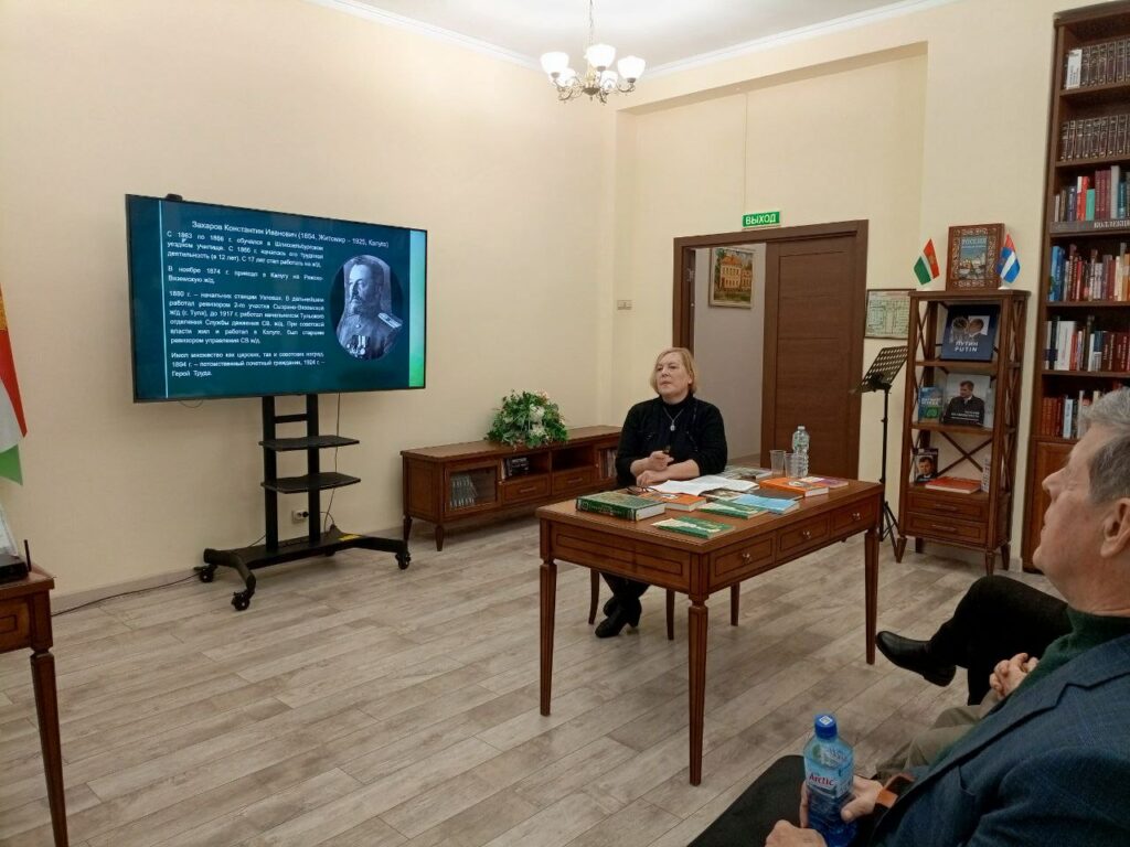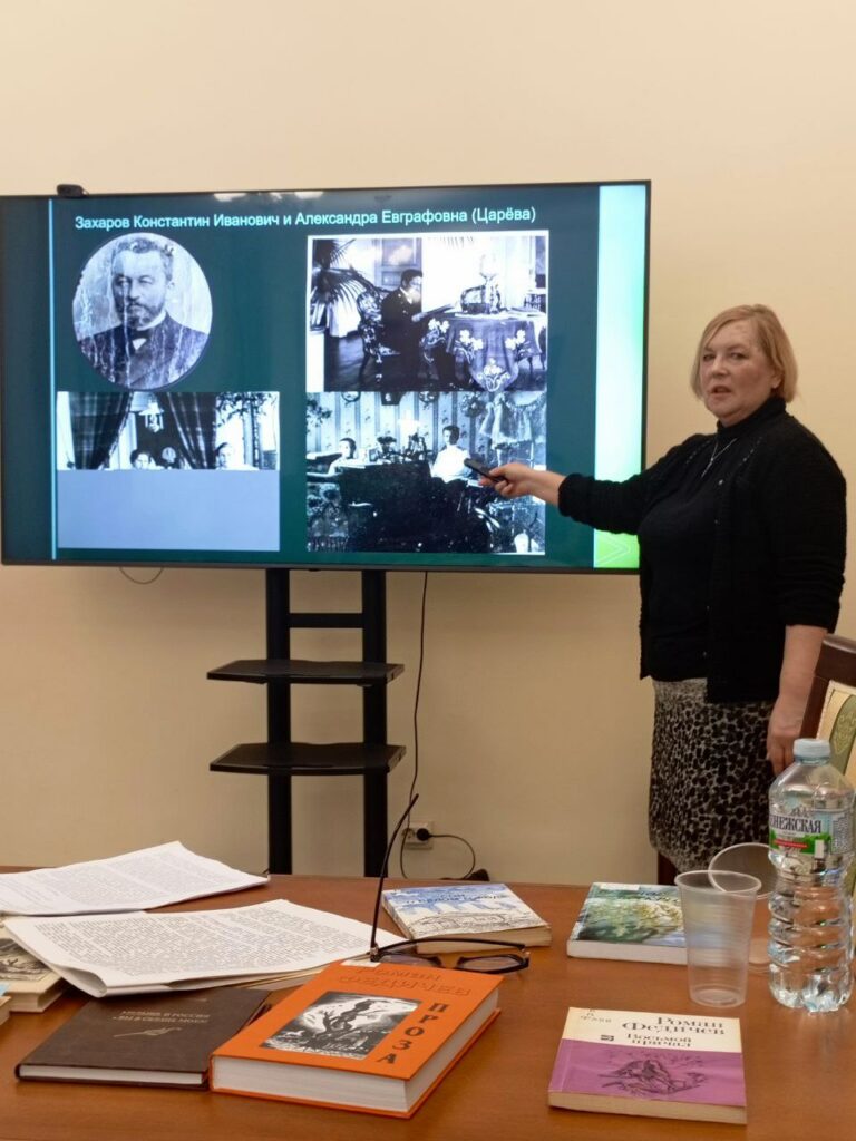 Второй выступающей стала краевед Елена Николаевна Адибекова, которая представила результаты своего генеалогического исследования, посвященного семьям Захаровых и Соловьевых из Калуги. В ходе работы она изучила архивные документы, дневники и воспоминания родственников, чтобы восстановить историю своей семьи. Её дядя Владимир Владимирович Соловьёв, оставивший большой след в культурной жизни Калуги, и сейчас широко известен в нашем краеведческом сообществе.