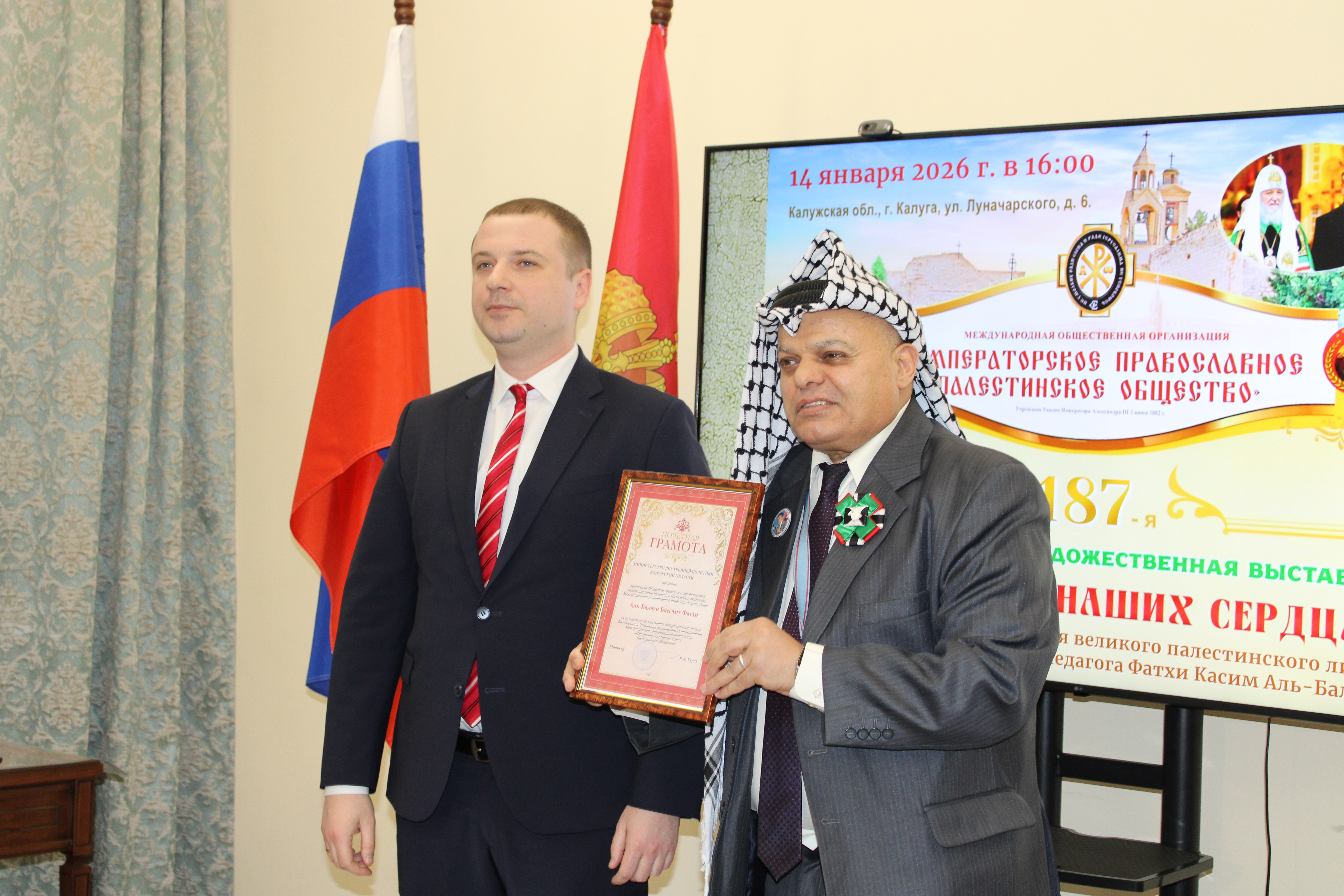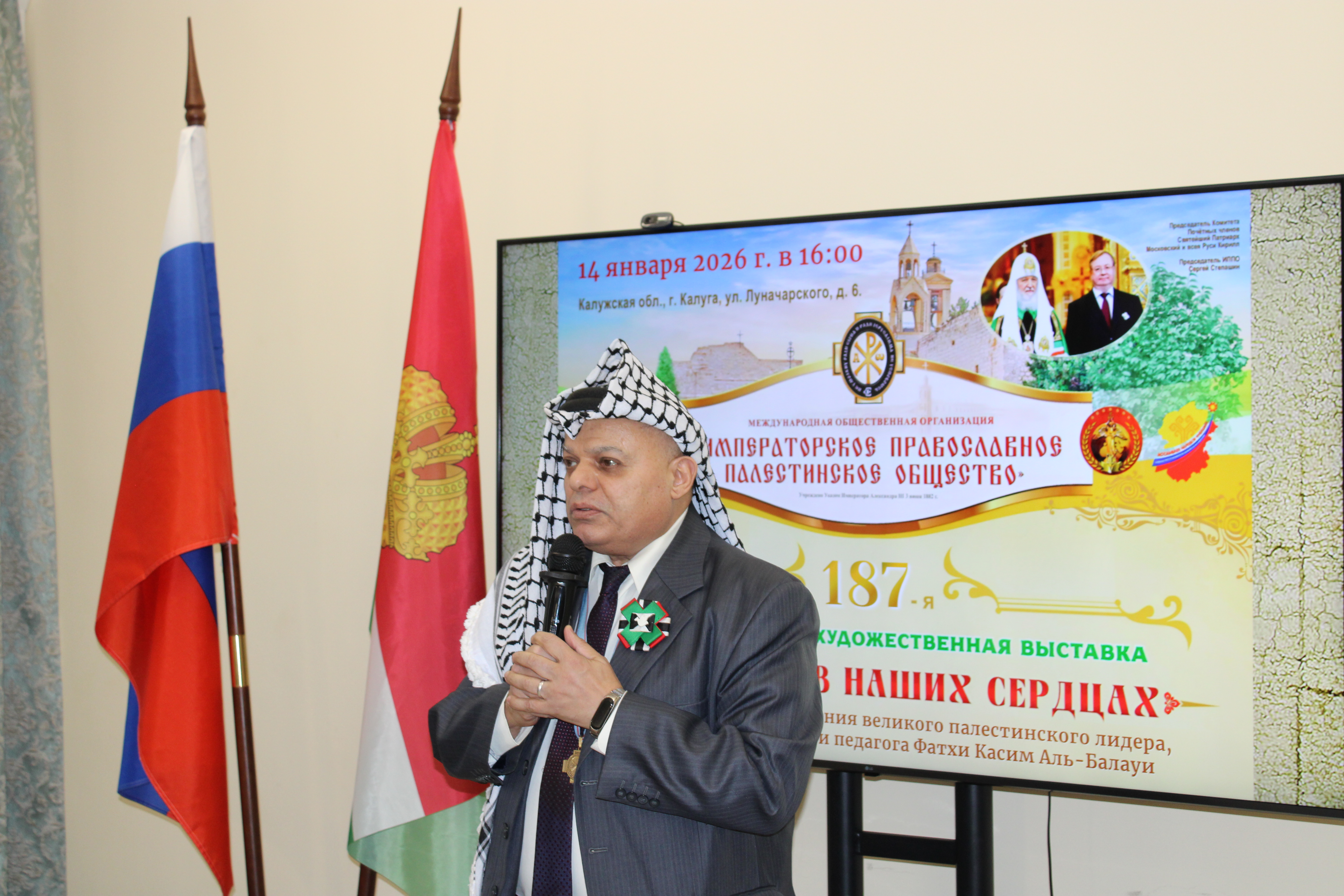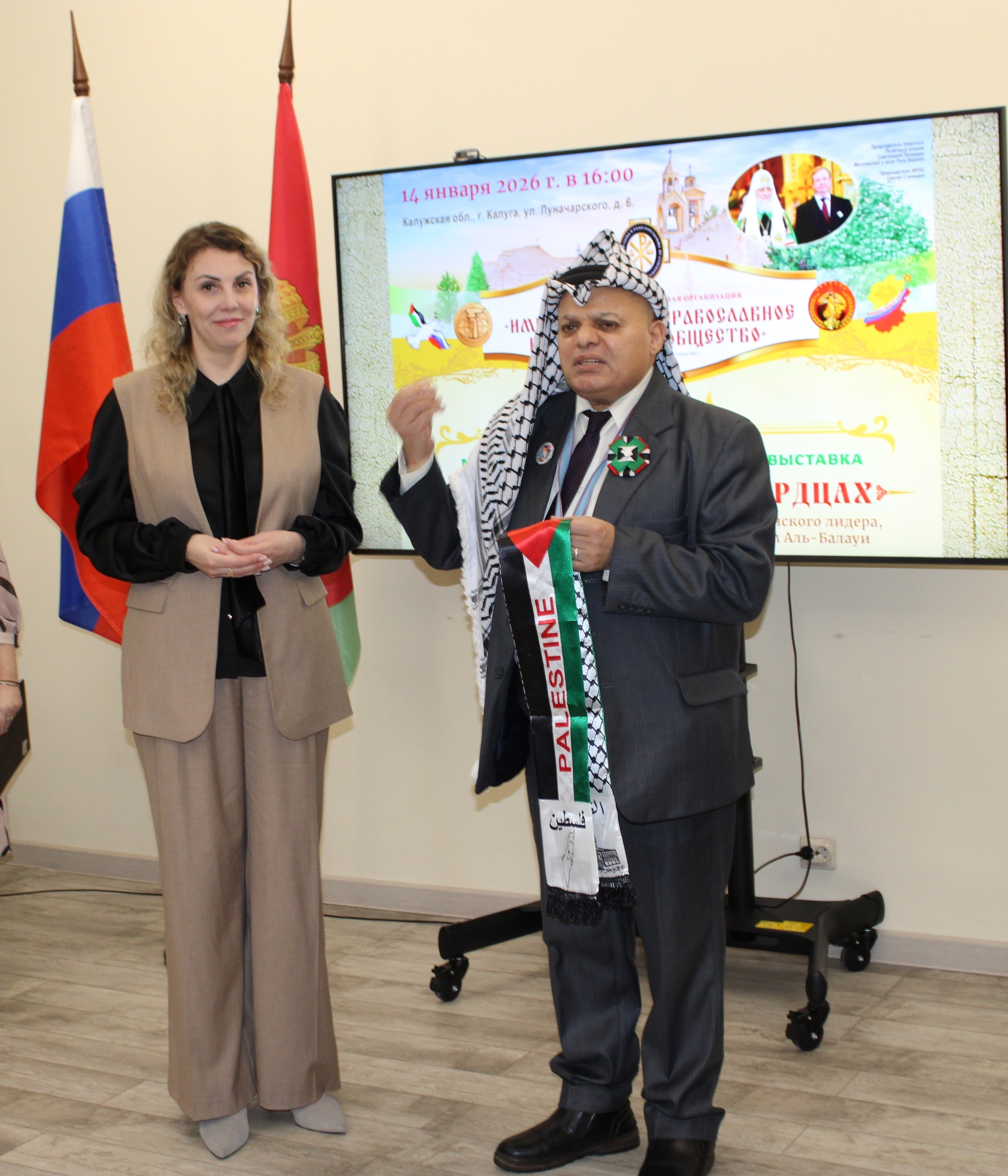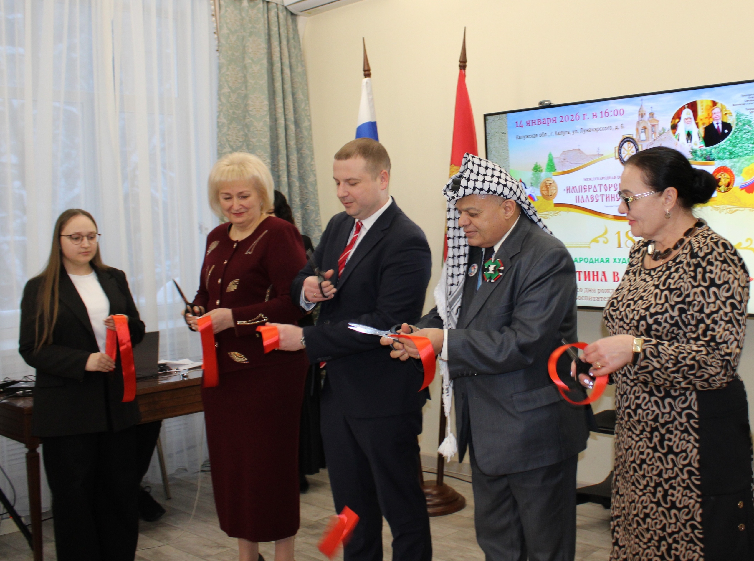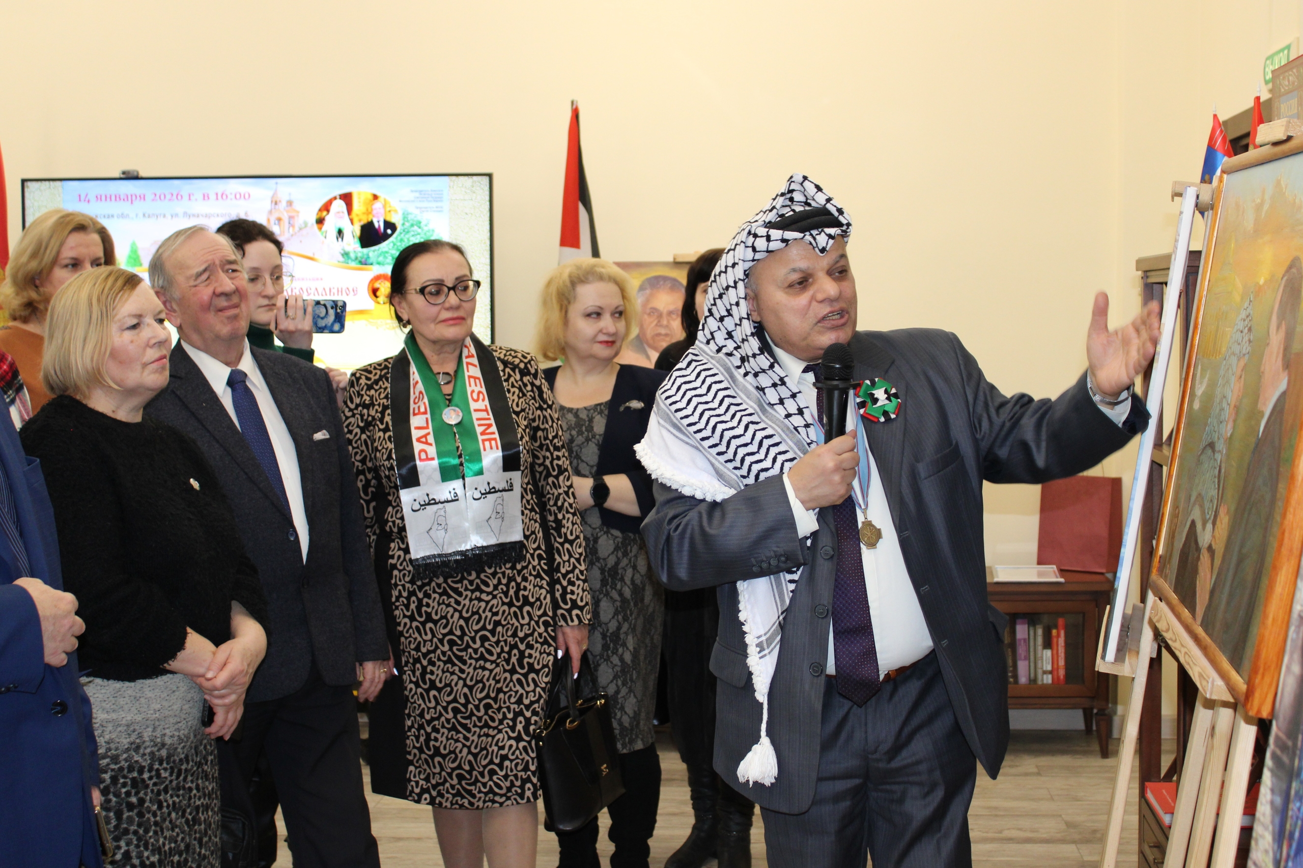 В день дружбы Калужской области и Палестины 14 января в Губернаторском зале Калужской областной научной библиотеки им. В.Г. Белинского» состоялось открытие 187-й международной художественной выставки «Палестина в наших сердцах».