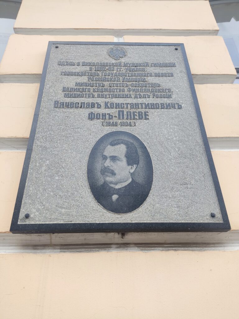 В Калуге также есть мемориальная доска, посвящённая Плеве. Она установлена на здании бывшей Калужской Николаевской мужской гимназии, где Плеве учился в 1862–1863 годах. В настоящее время это здание является учебным корпусом Калужского государственного университета (КГУ) имени К. Э. Циолковского.