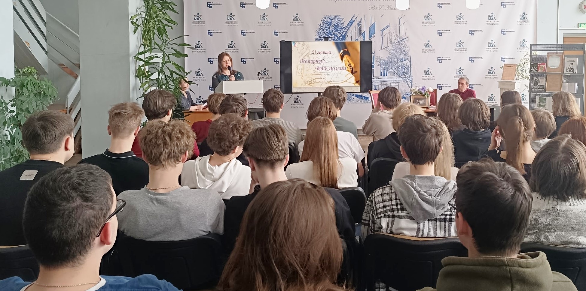 21 марта ежегодно на всей планете отмечается Всемирный день поэзии. Сотрудники ЦППиПИ провели поэтический час «Служим Родине оружием слова» для студентов ГБПОУ КО «Калужский техникум электронных приборов». Рассказали об истории учреждения праздника, познакомили с традициями в нашей стране и других странах, также привели интересные и редкие факты поэтической культуры.