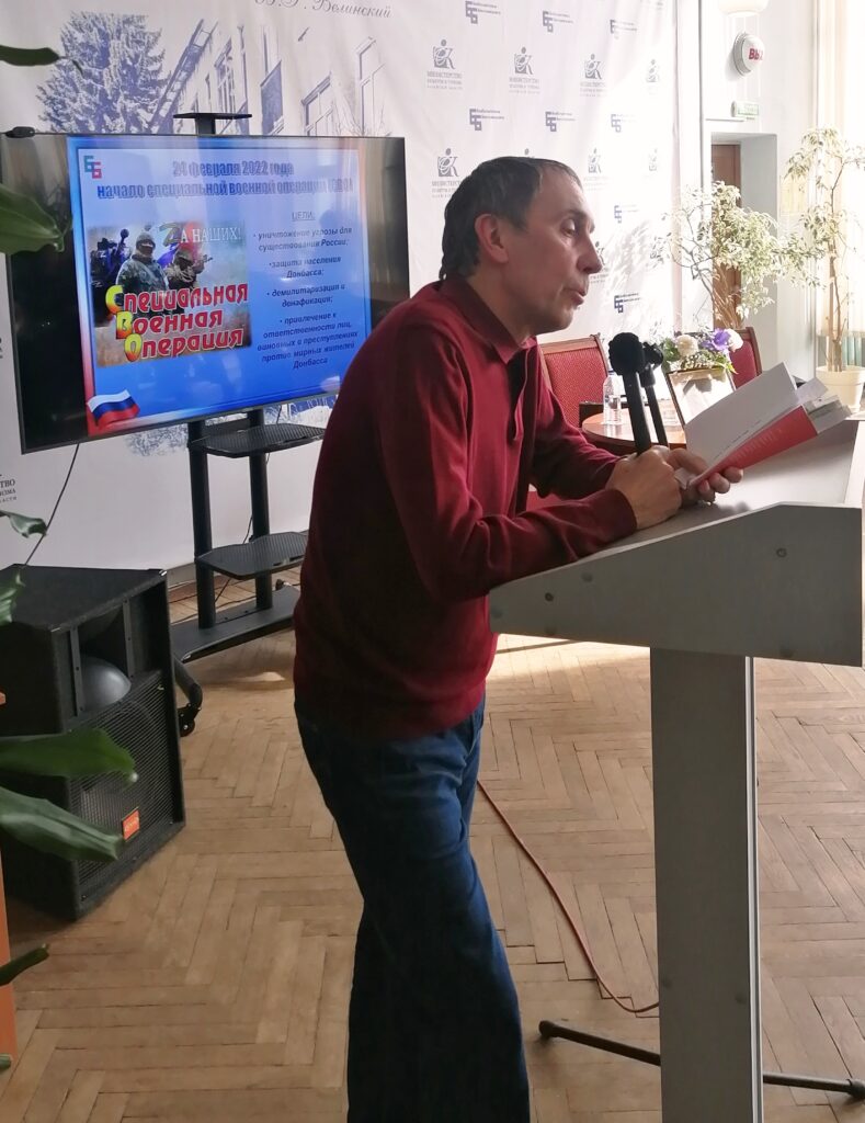 Наиболее актуальной в наше время является военно-патриотическая поэзия. Поэтому, специальным гостем приглашен калужский автор поэм и стихотворений о любви к Родине, своей стране, своему народу и языку — А.А. Купрюхин. В 2014 г. жизнь страны в новых реалиях нашла отражение в книге под названием «До и после». С тех пор, автор пишет стихи патриотического содержания. В январе 2023 г. вышло в свет издание с содержанием около 70 работ. Поэт объяснил слушателям, что такое патриотизм, уважение к своему родному языку и культуре родной многонациональной страны, провел аналогии с событиями прошлого и настоящего, напомнил о важности отстаивания своей гражданской позиции. Такие стихи созданы для атмосферы вдохновения и патриотизма, чтобы каждый почувствовал свою причастность к истории и будущему Родины.