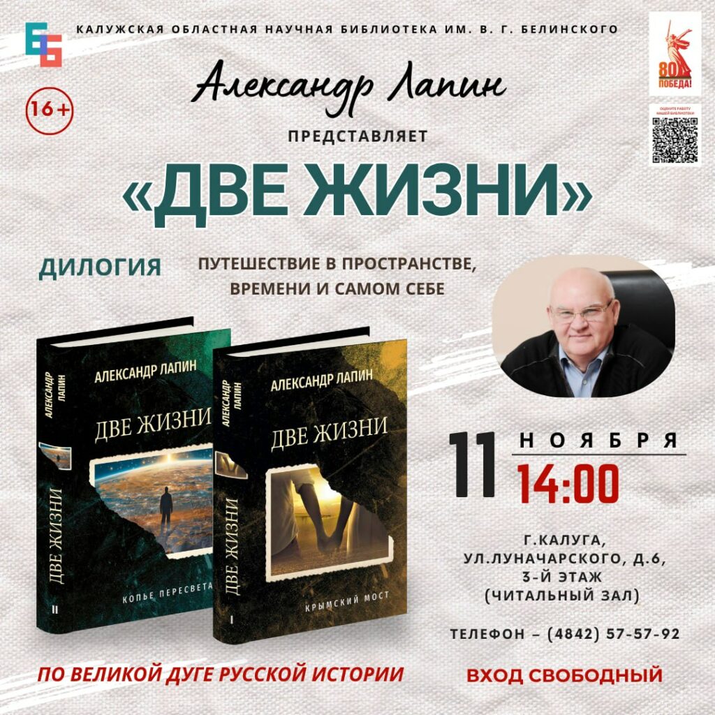 Александр Лапин представит в Калуге дилогию «Две жизни», которая объединяет романы «Крымский мост» и «Копье Пересвета».