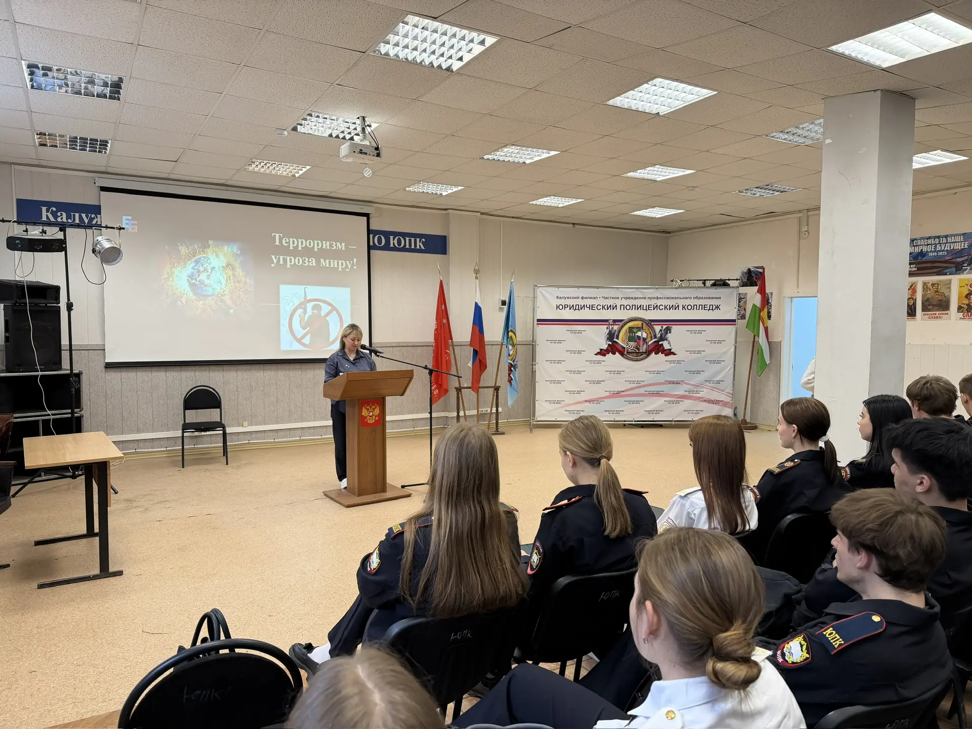 «Терроризм – угроза миру!» — так звучит профилактическая лекция, направленная на борьбу с терроризмом, которую провели сотрудники библиотеки для учащихся Калужского филиала ЧУ ПО Юридический полицейский колледж.