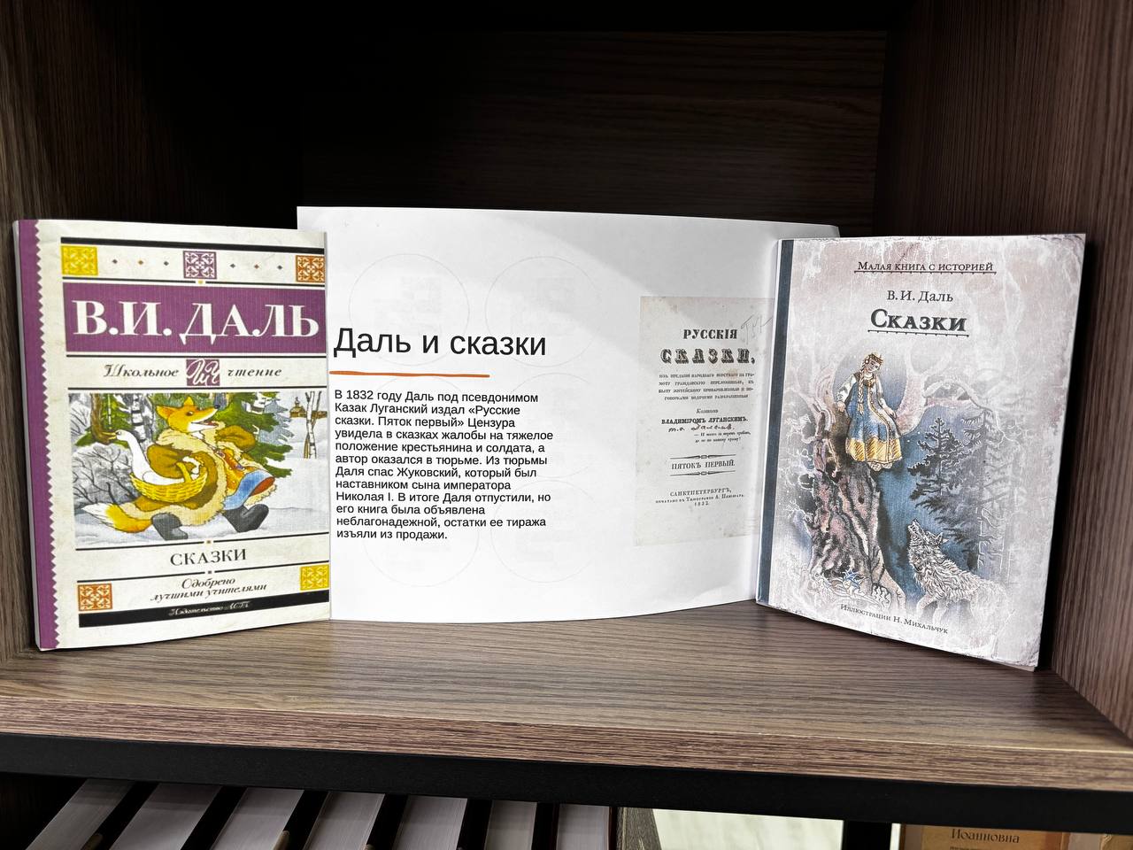Выставка, посвященная Владимиру Ивановичу, приглашает нас окунуться в мир этого выдающегося человека. Даль был не только гениальным лексикографом, но и человеком удивительной широты интересов и талантов. Он проявил себя как талантливый врач, инженер, сказочник. Мало кто знает, что Владимир Иванович Даль, помимо своей колоссальной работы по сбору слов, был еще и талантливым писателем, сочинявшим сказки. Эти сказки были настолько хороши, что их высоко оценил даже великий Пушкин. Однако, к сожалению, литературная слава обошла его стороной, а первый сборник его сказок и вовсе постигла участь быть запрещенным цензурой.