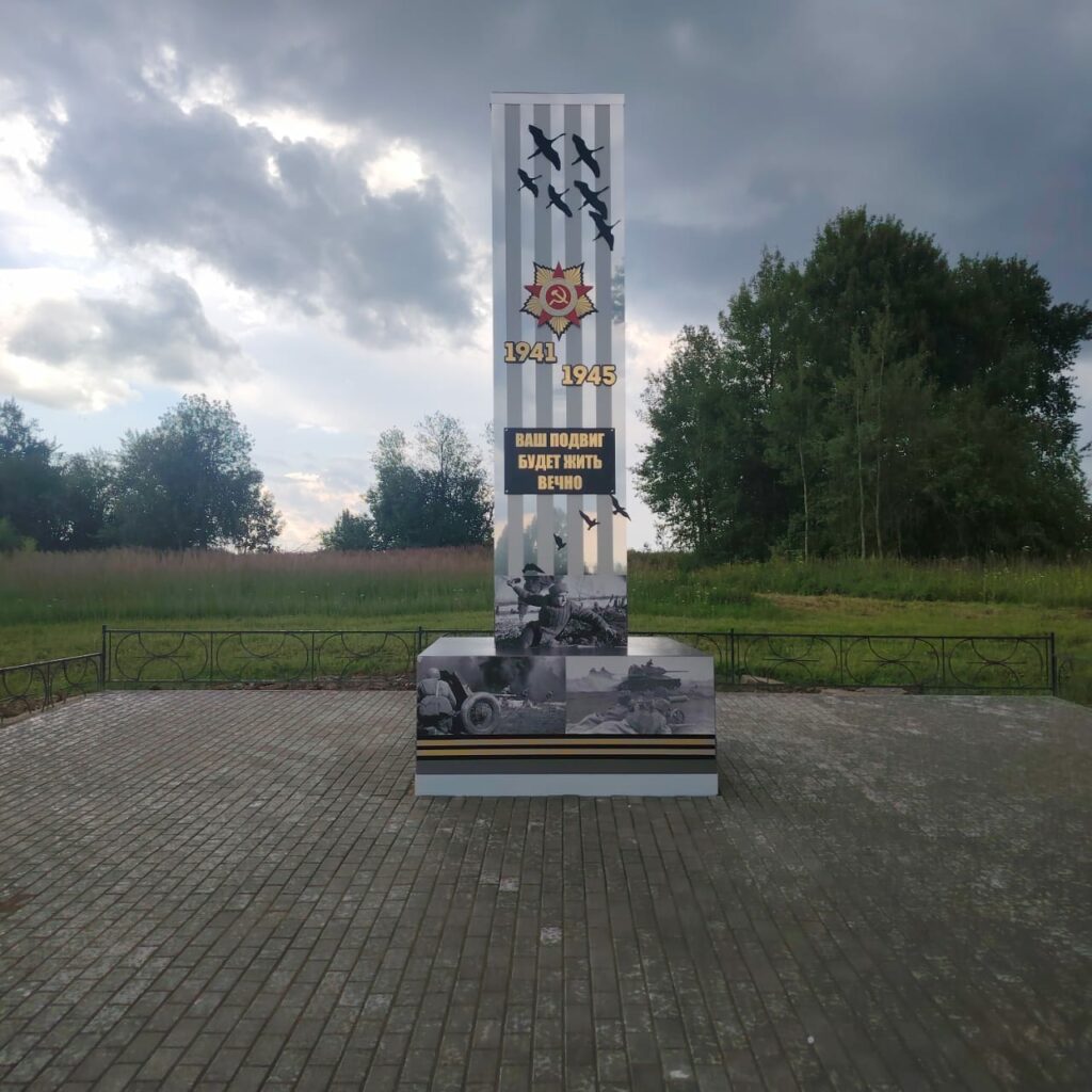 Памятник поставлен воинам, павшим за освобождение деревни Попково. Стела белого цвета 1941-1945 воинам 12 гвардейской стрелковой девозии.