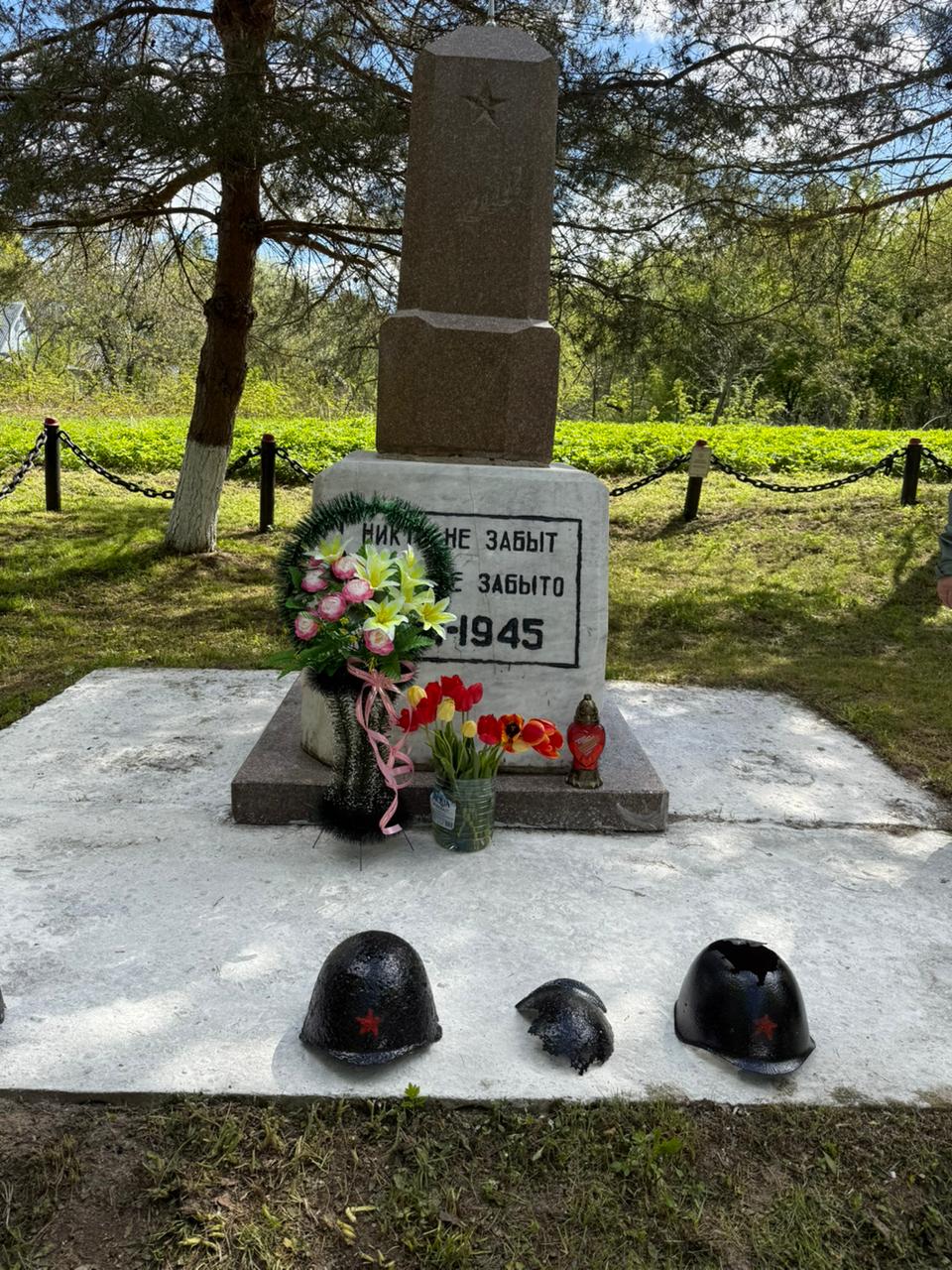 Воинское захоронение возникло в мае 2001 г., когда бойцы поискового отряда из Мордовии захоронили здесь в торжественной обстановке останки 80 советских воинов, обнаруженные ими на территории Сухиничского района. В последующем, в 2001 –2003 гг., сюда были произведены еще три перезахоронения останков советских воинов, найденных бойцами мордовского и калужских поисковых отрядов. Всего ими были захоронены останки 264 советских воинов. 18 фамилий удалось установить и найти родственников. Всего было образовано пять могильных холмов, обложенных дерном. Два могильных холма имеют раз-меры 1 м х 2 м каждый, три – по 2 м х 2 м. Рядом с могильными холмами установлен памятник: на железобетонном постаменте площадью 2 м х 3 м находится мраморный обелиск с площадью основания 0,4 м х 0,7 м и высотой 1,5 м, увенчанный пятиконечной звездой. На постаменте высечена надпись: «Никто не забыт и ничто не забыто. 1941 – 1945гг». Территория захоронения обнесена металлической из цепей оградой размером 5 м х 7 м и высотой 0,5 м.
