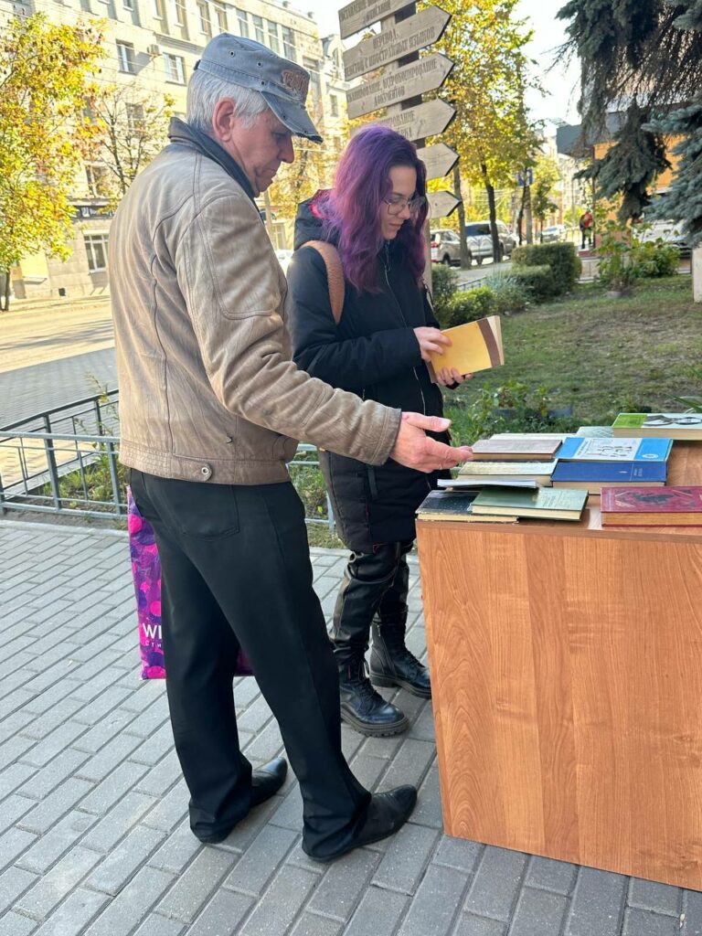 Прекрасным октябрьским днем состоялась традиционная акция свободного книгообмена под девизом «Пусть всегда будет книга!» У входа в КОНБ имени В. Г. Белинского под яркими лучами осеннего солнышка расположились сотрудники библиотеки с широким выбором литературы российских и зарубежных авторов.