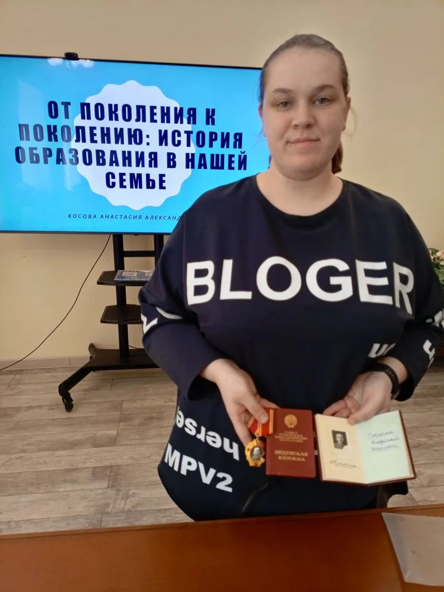 Бабушки Анастасии Александровны были удостоены орденов Ленина, что свидетельствует о высоком уровне их профессионализма и вклада в развитие образования нашей области. Выступление докладчика сопровождалось личными архивными материалами, фотографиями, документами и наградами, что позволило гостям библиотеки увидеть реальные свидетельства семейной истории и проникнуться уважением к труду и достижениям этой семьи.