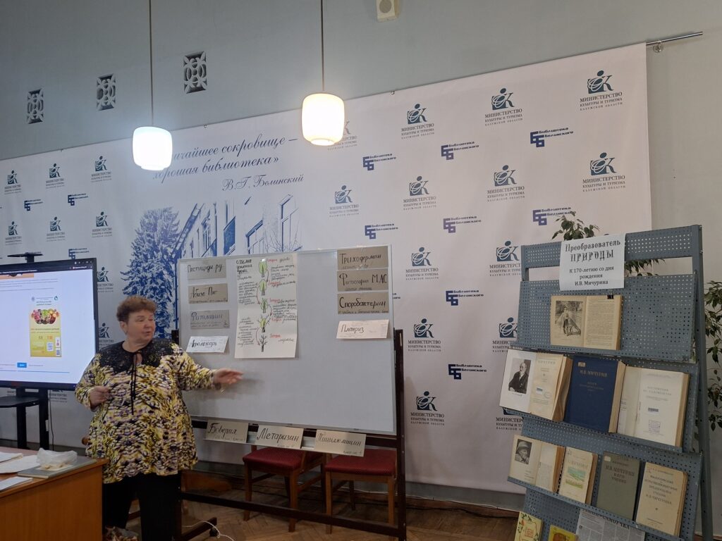 🍎Встреча в клубе садоводов «Добрые плоды» 11 ноября началась с обзора книжной выставки, посвященной 170-летию со дня рождения выдающегося ученого-генетика и селекционера И.В. Мичурина.