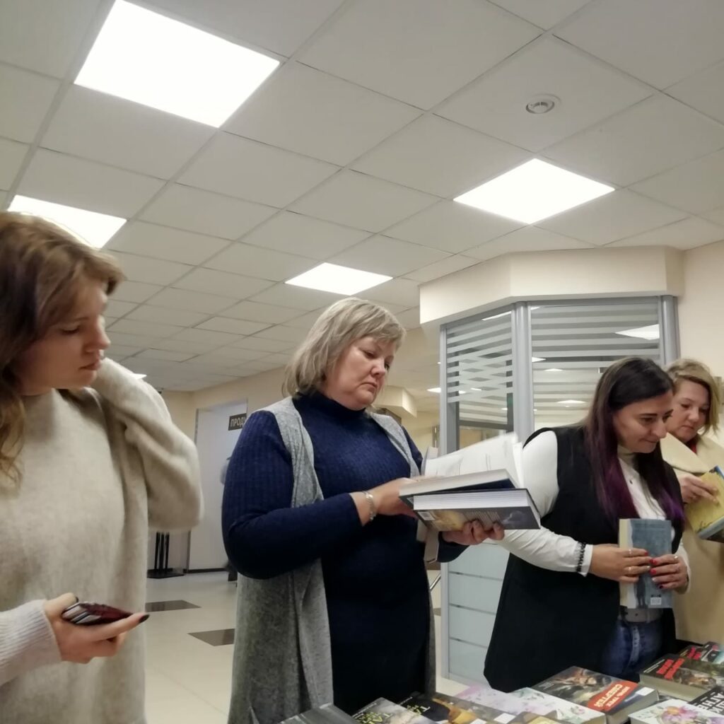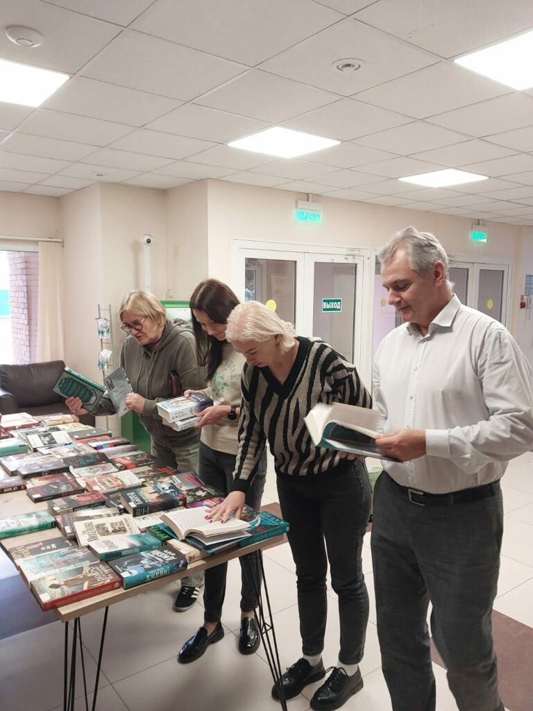 В обеденный перерыв, без отрыва от производства, сотрудники с удовольствием пользовались возможностью подобрать литературу для чтения, получить долгожданные заказы и сдать уже прочитанное. На этот раз одной из многочисленных книг, заказанных он-лайн, стал знаменитый роман Владимира Богомолова «Момент истины»(В августе 44-го…), новая киноверсия которого под названием «Август» в сентябре этого года вышла в прокат на экраны страны.