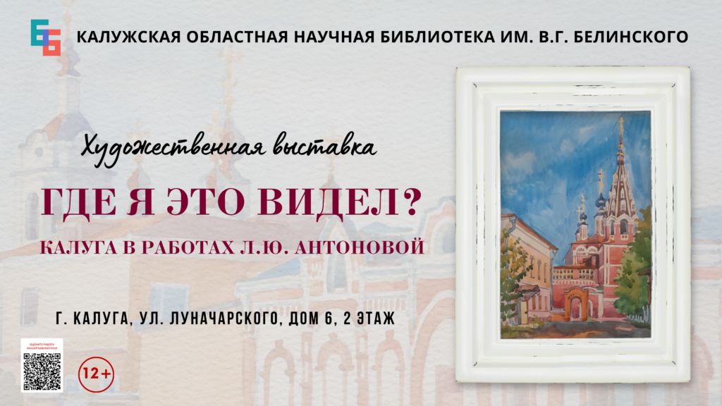 24 марта 2026 г. в библиотеке открывается художественная выставка «Где я это видел? Калуга в работах Л. Ю. Антоновой».