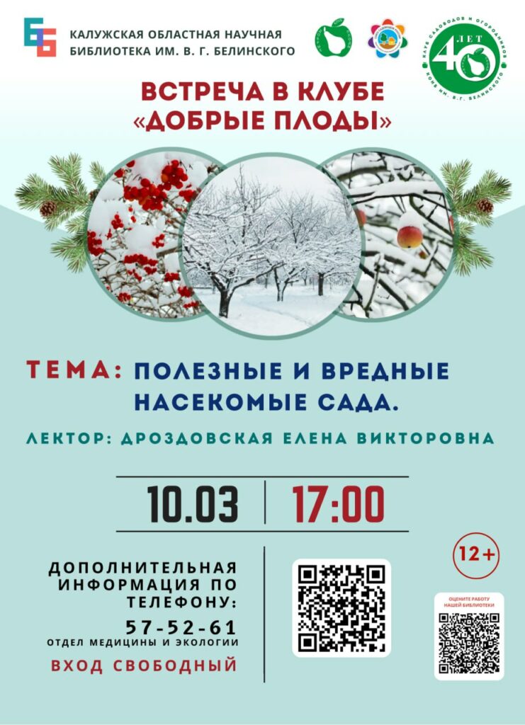 10 марта в 17.00 ждем всех любителей сада и огорода на очередном занятии в клубе «Добрые плоды»!